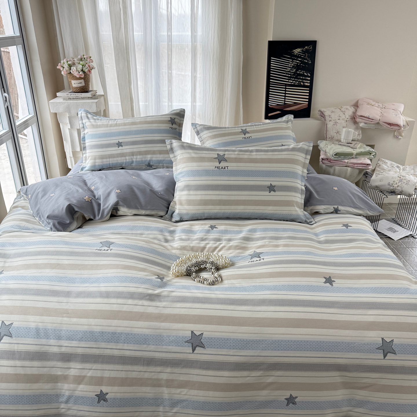 美丽坊 2026新款跨境外贸爆款高支数高密度全棉纯棉四件套 星星木马