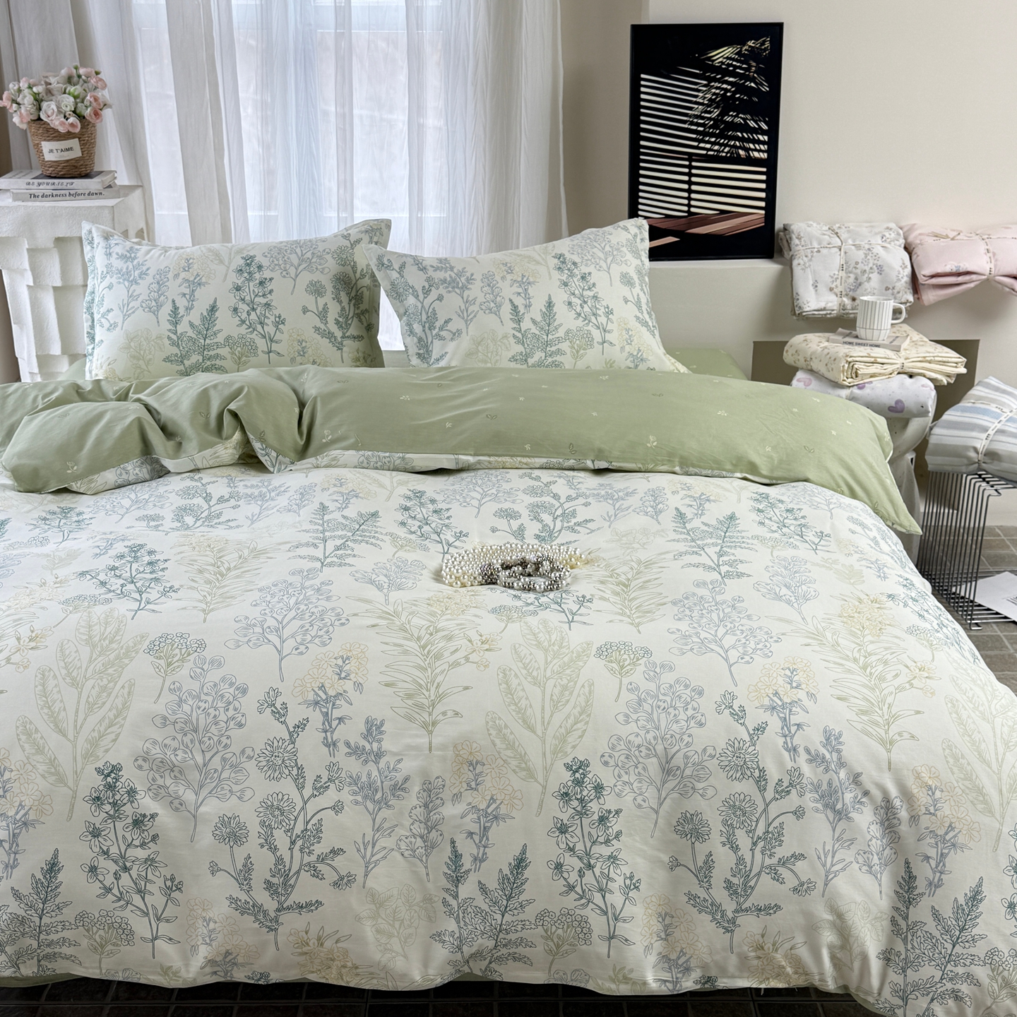 (总)美丽坊 2026新款韩系沐纱棉印花四件套,白茶,丛林喵,海盐纹,花与兔,可颂,兰茵,漫野,秘境森林,莫里,森林小熊,童趣粉,小月野