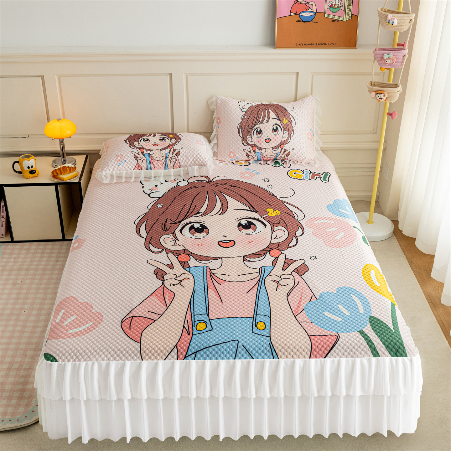 赛丽雅 2026春夏新款大板卡通豆豆凉席席子空调软席三件套 元气女孩