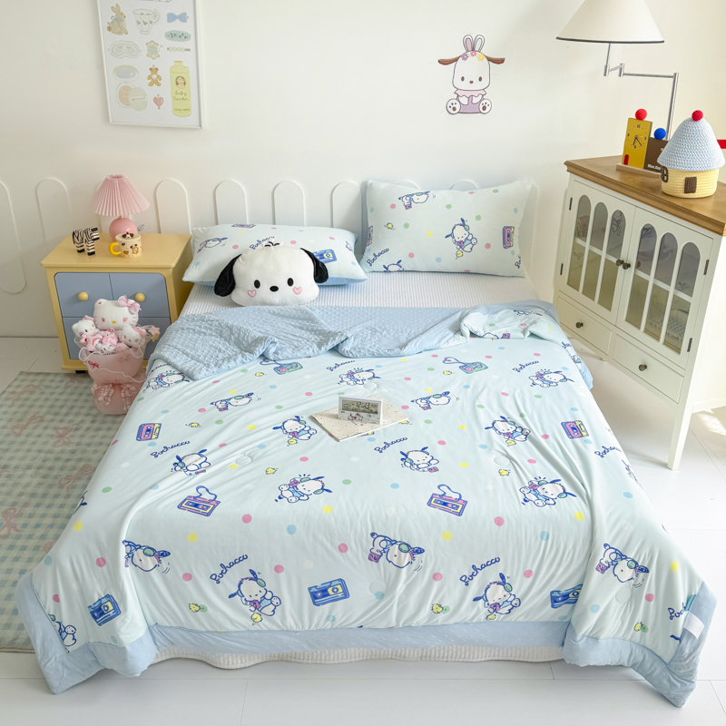 (总)花满路 2024新款有氨凉感丝卡通印花豆豆被儿童被夏被被子,玉桂狗,库洛米,KT猫,卡帕狗,米乐蒂