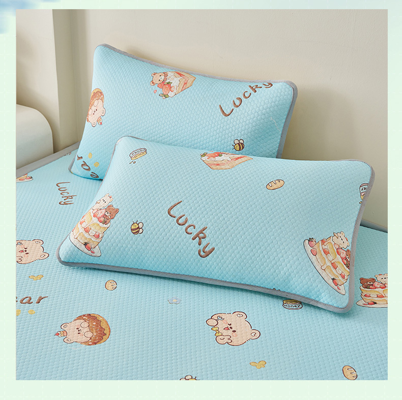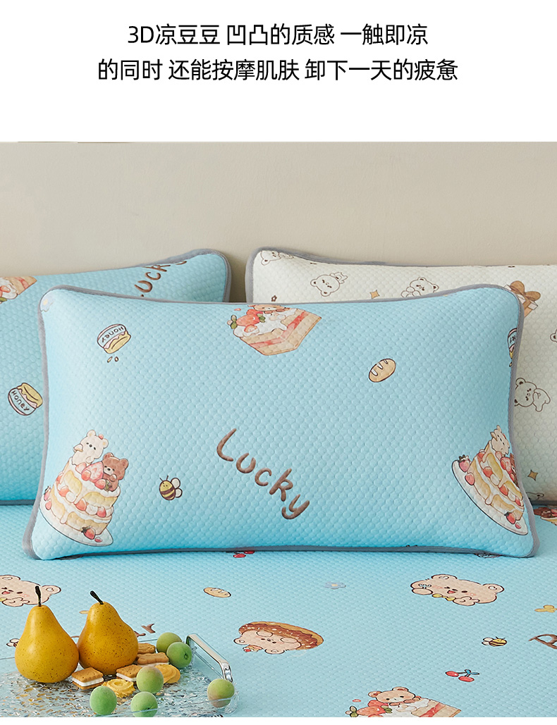 商品名称:奇丝雅 2026新款夏季A类卡通印花冰豆豆冰丝凉席枕套凉感家用可机洗单人学生宿舍48×74cm一只一对 甜甜圈