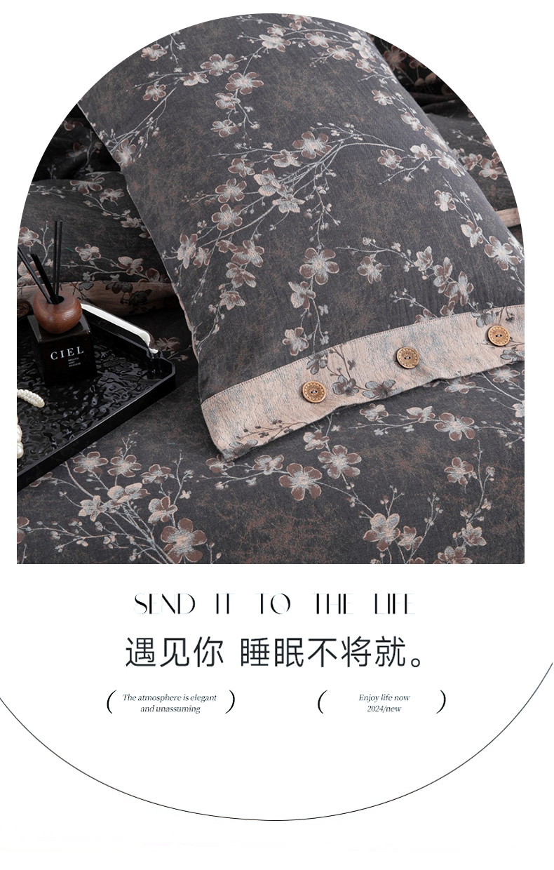 云天家纺 2026新款A类全棉纯棉色织提花双层纱纽扣款四件套 百合颂绿