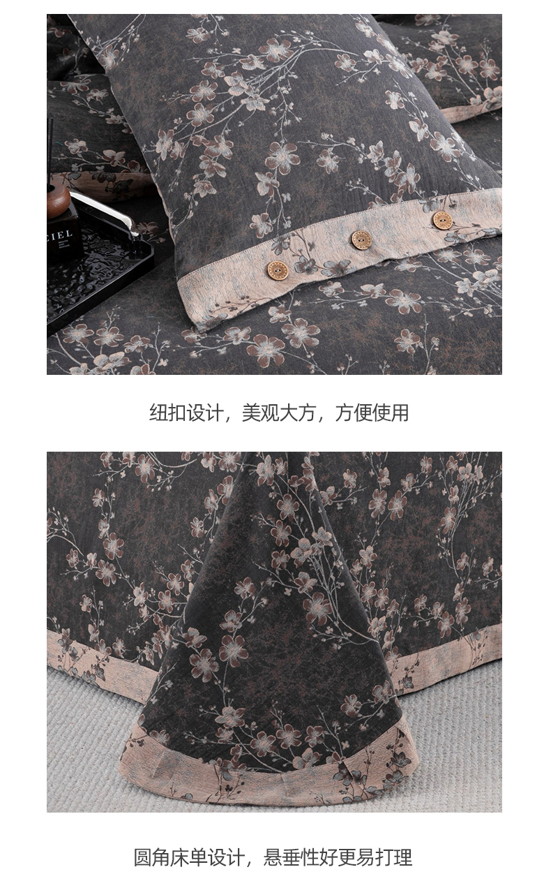 商品名称:云天家纺 2026新款A类全棉纯棉色织提花双层纱纽扣款四件套 百合颂绿