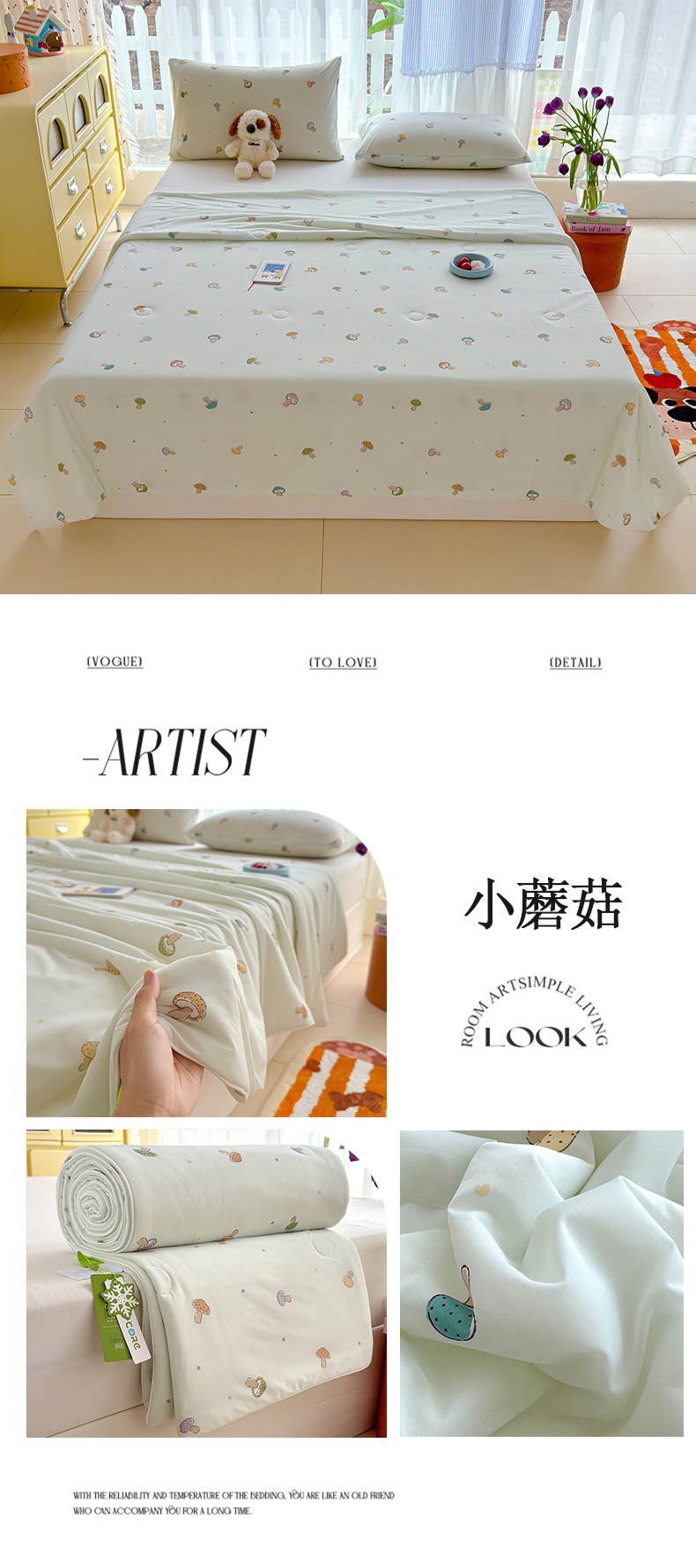 商品名称:弗苓家纺 2026新款麻绳款锦氨凉感丝夏被夏凉被空调被 小蘑菇