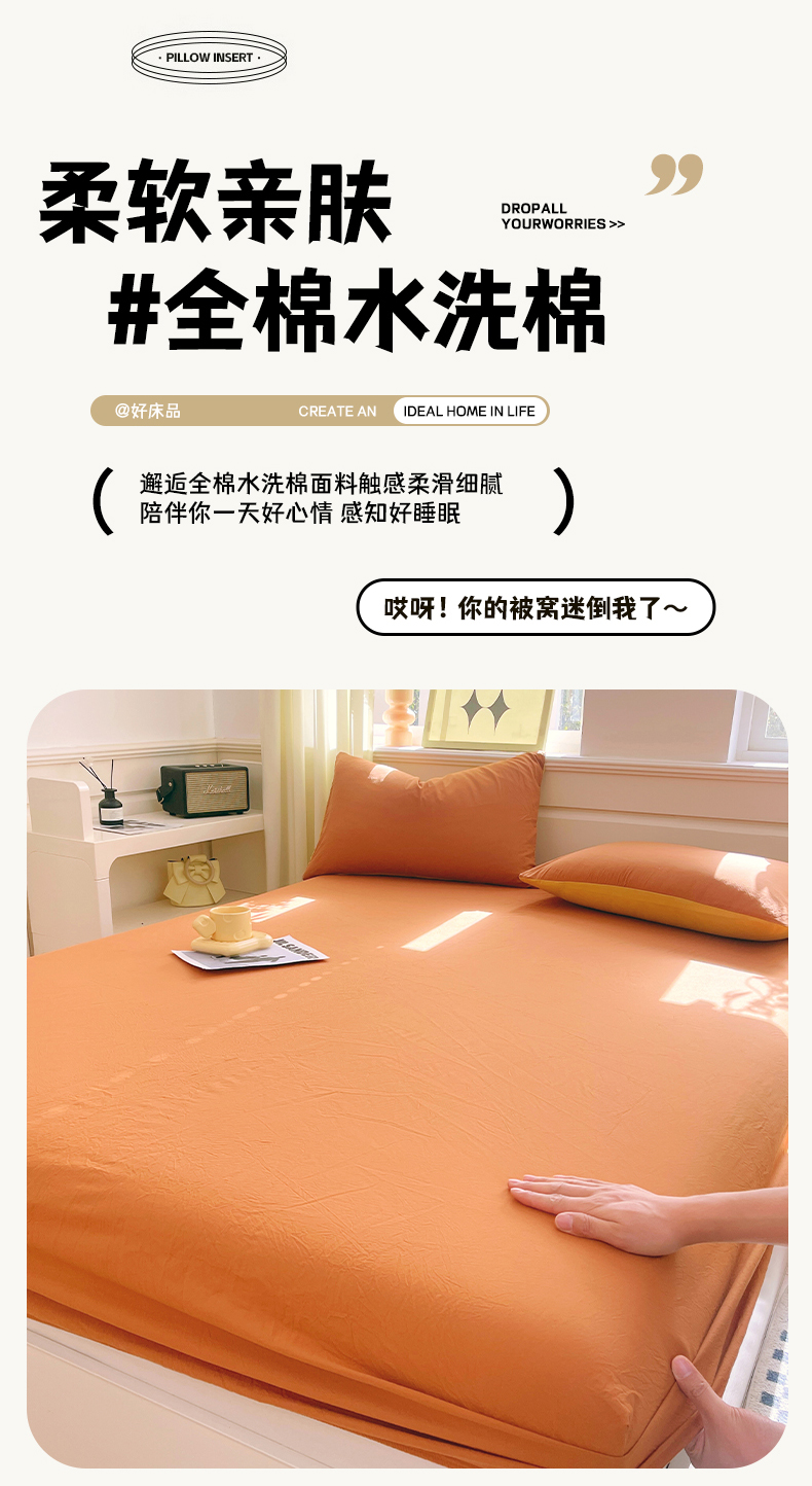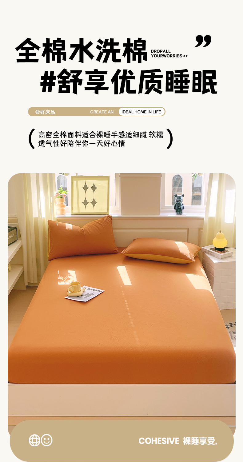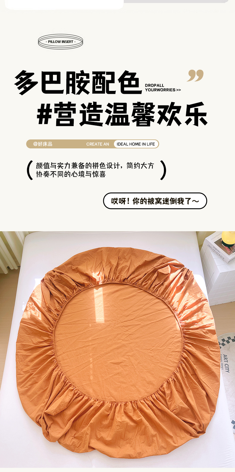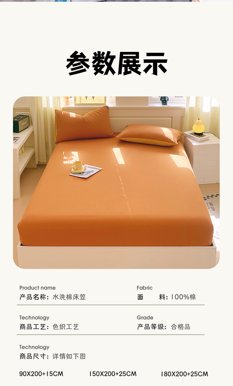春皖家纺 2026春夏新款双拼全棉纯棉水洗棉单床笠 床笠单件 素雅焦糖