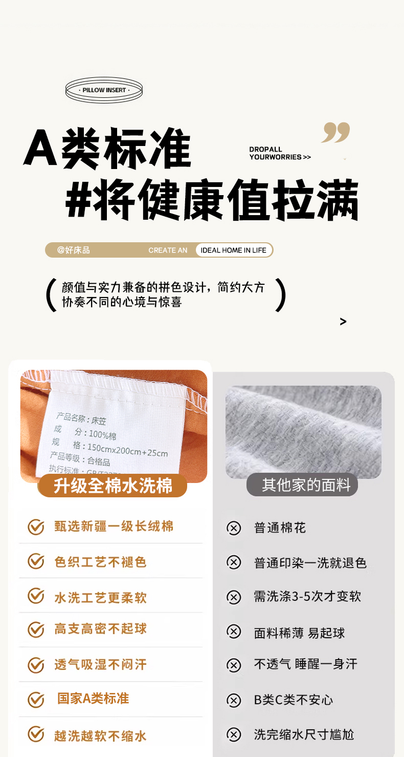 商品名称:春皖家纺 2026春夏新款双拼全棉纯棉水洗棉单床笠 床笠单件 素雅焦糖