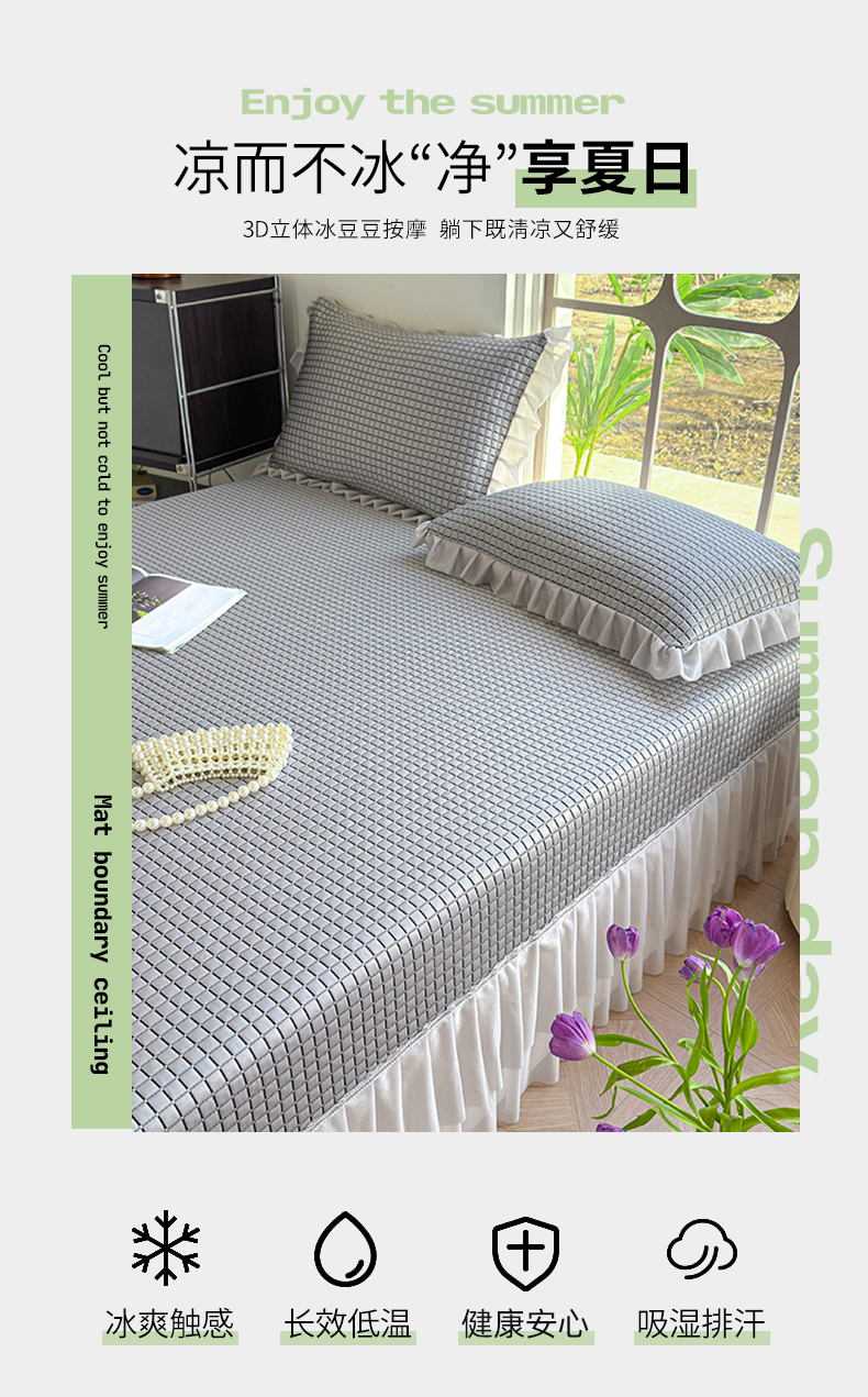 (总)冬然家纺 2026新款【清凉一夏系列】冰豆豆凉席床裙款,清凉一夏-卡其,清凉一夏-粉,清凉一夏-灰,清凉一夏-蓝,清凉一夏-绿