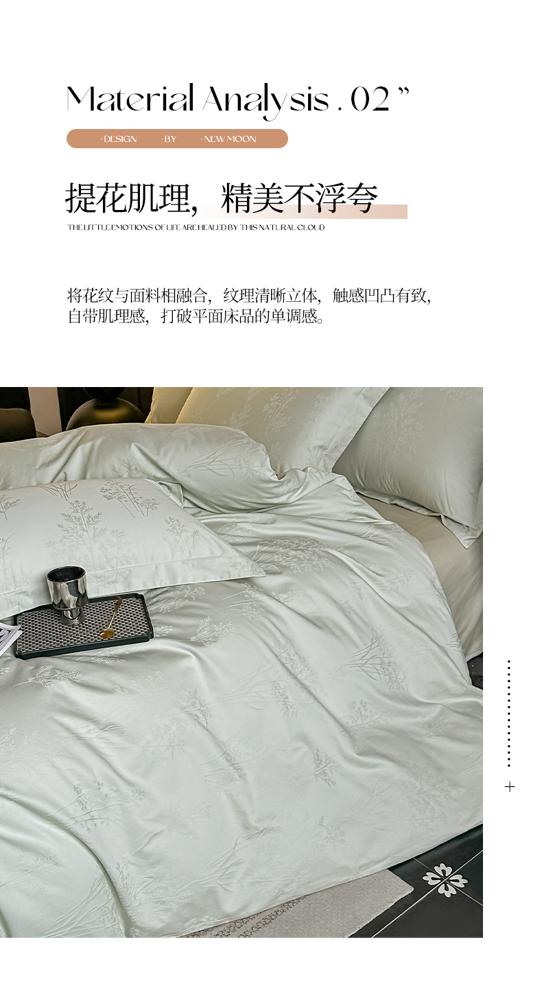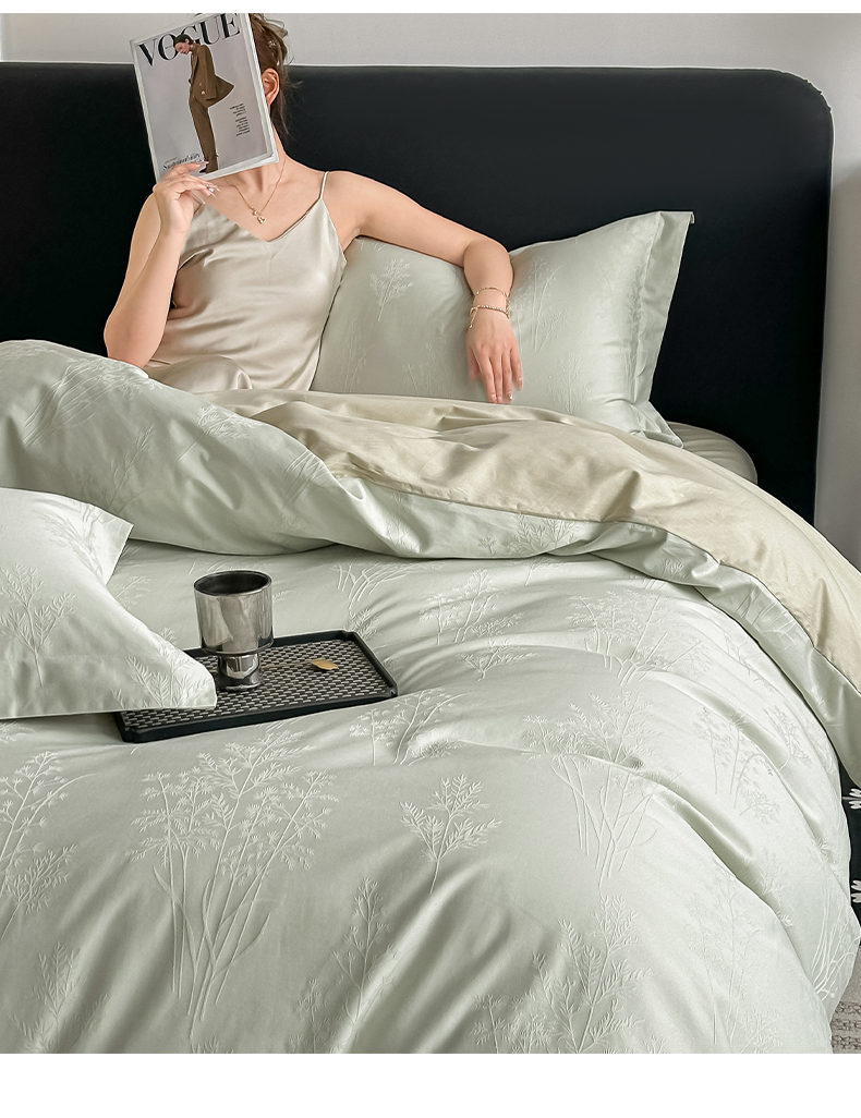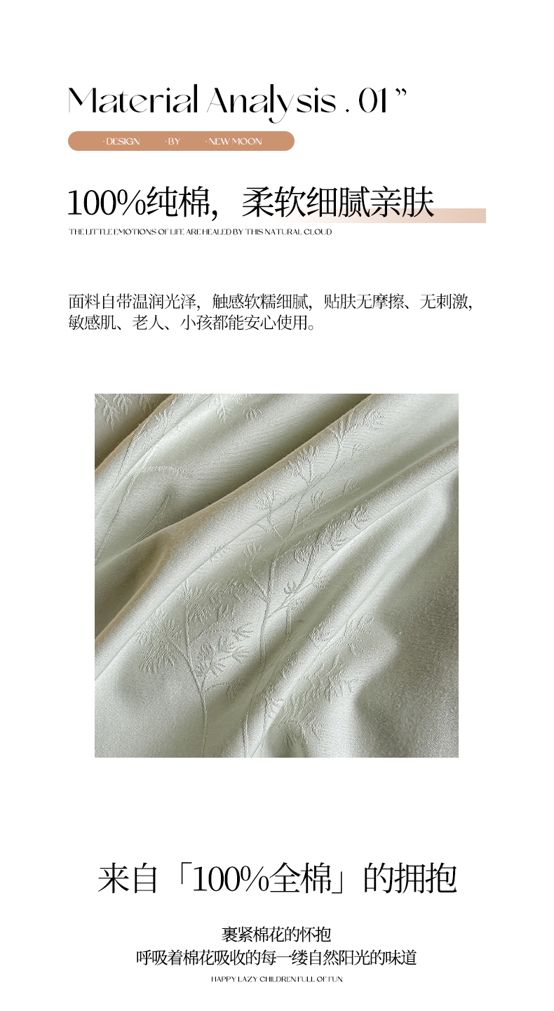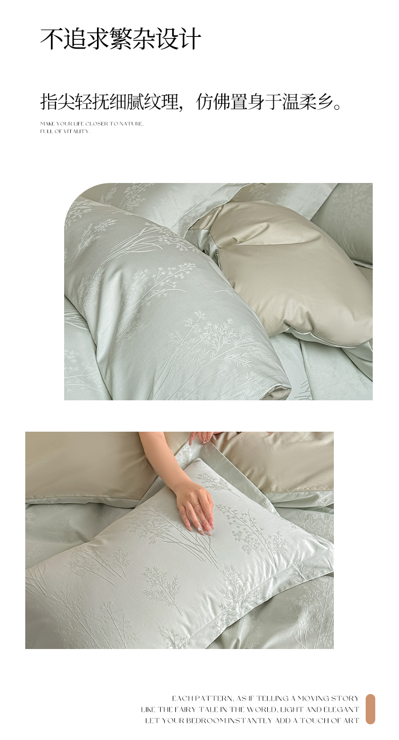 当前位置: 91家纺网 > 商品网购 > 床品套件 > 四件套 > 全棉普通四件套 > 宅家居 2026新款轻奢A类60支立体浮雕长绒棉纯棉提花贡缎全棉四件套光泽绸缎感三件套 清风颂雅-浅绿