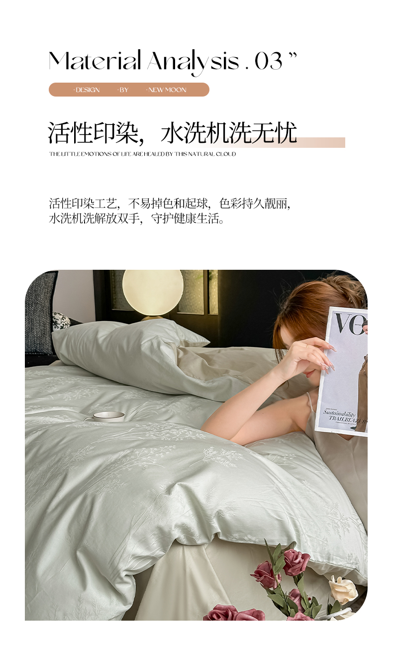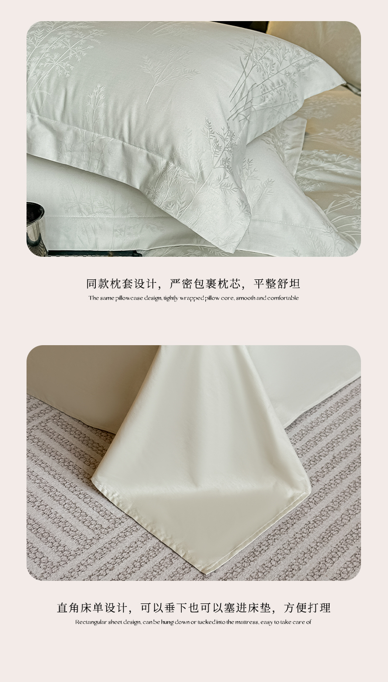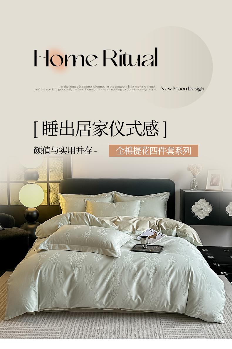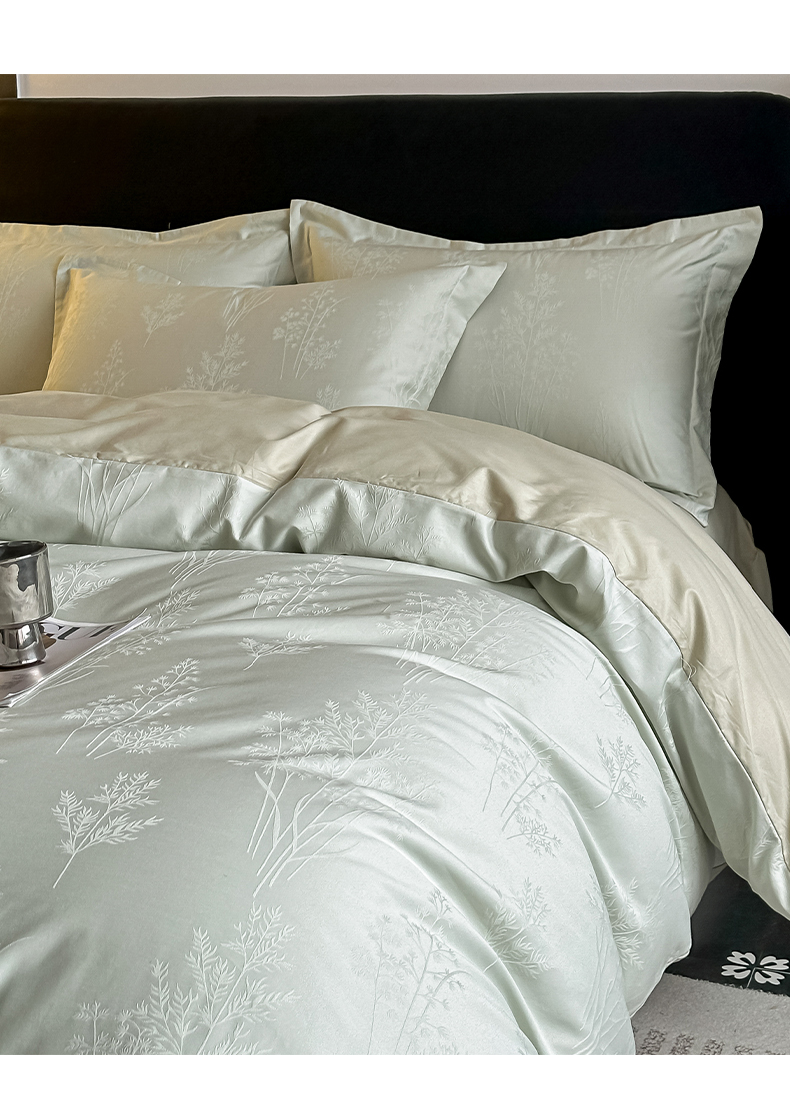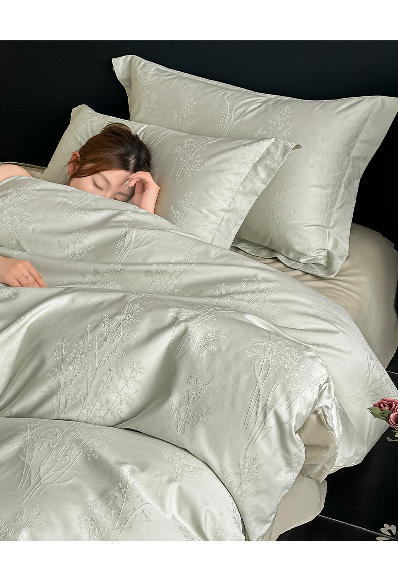 当前位置: 91家纺网 > 商品网购 > 床品套件 > 四件套 > 全棉普通四件套 > 宅家居 2026新款轻奢A类60支立体浮雕长绒棉纯棉提花贡缎全棉四件套光泽绸缎感三件套 清风颂雅-浅绿