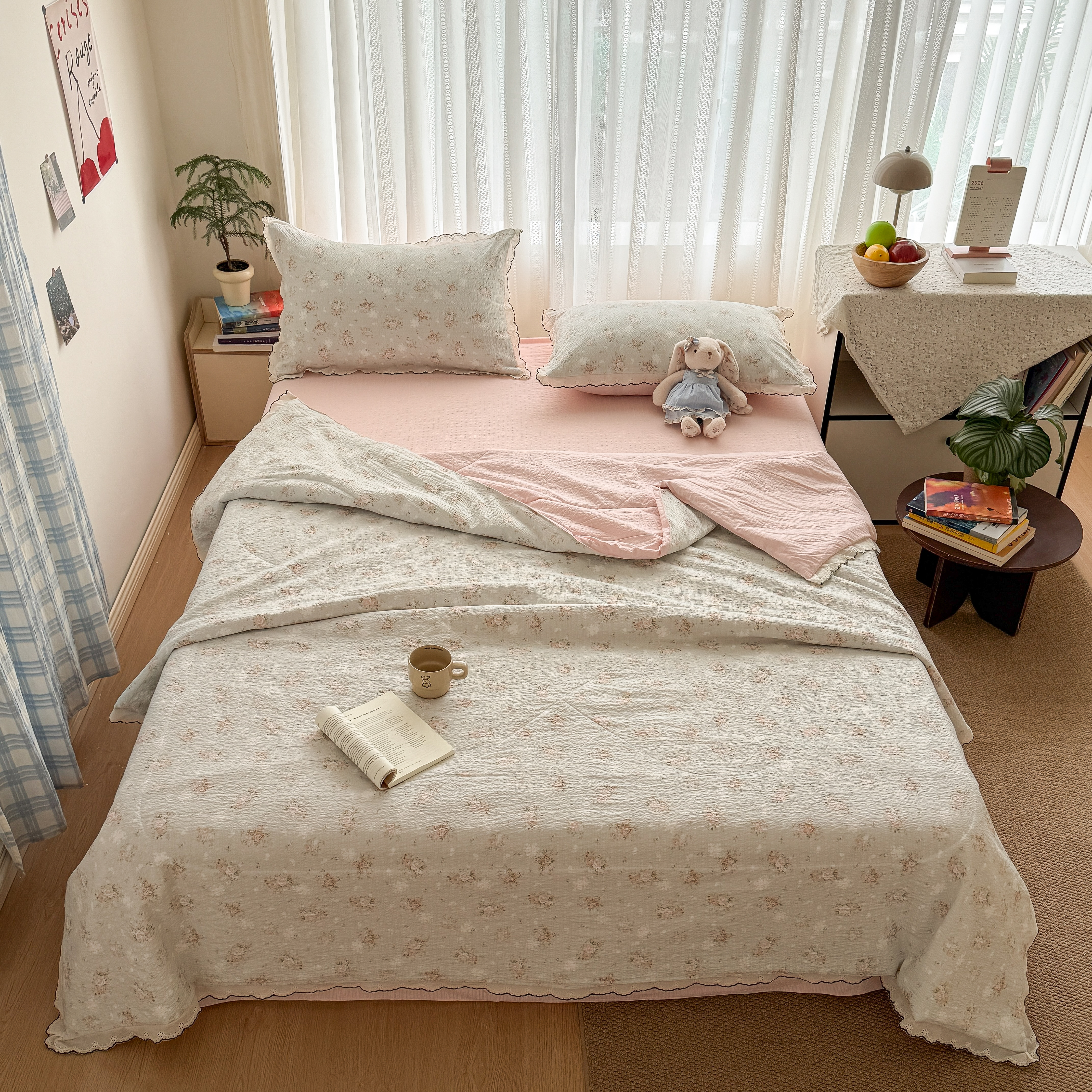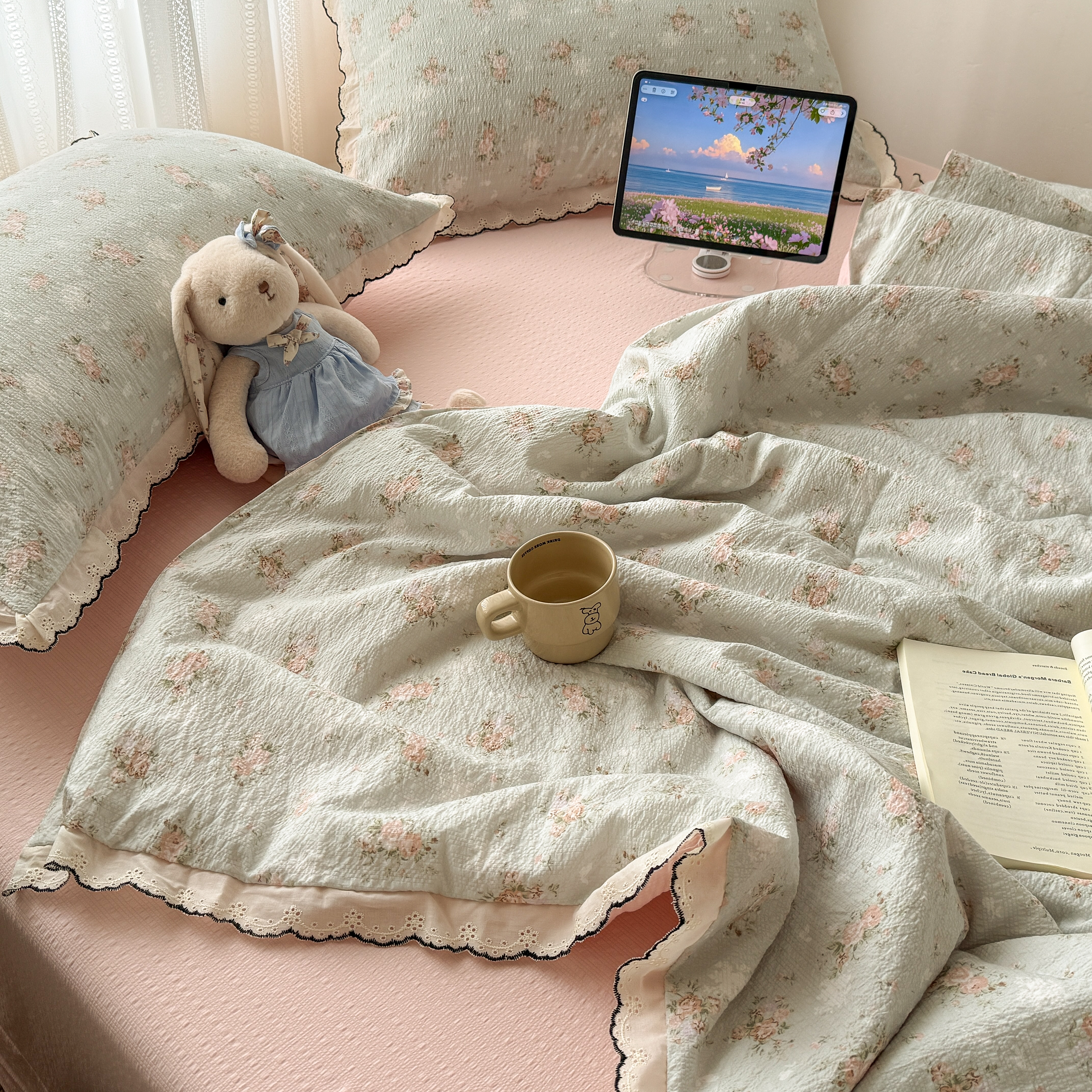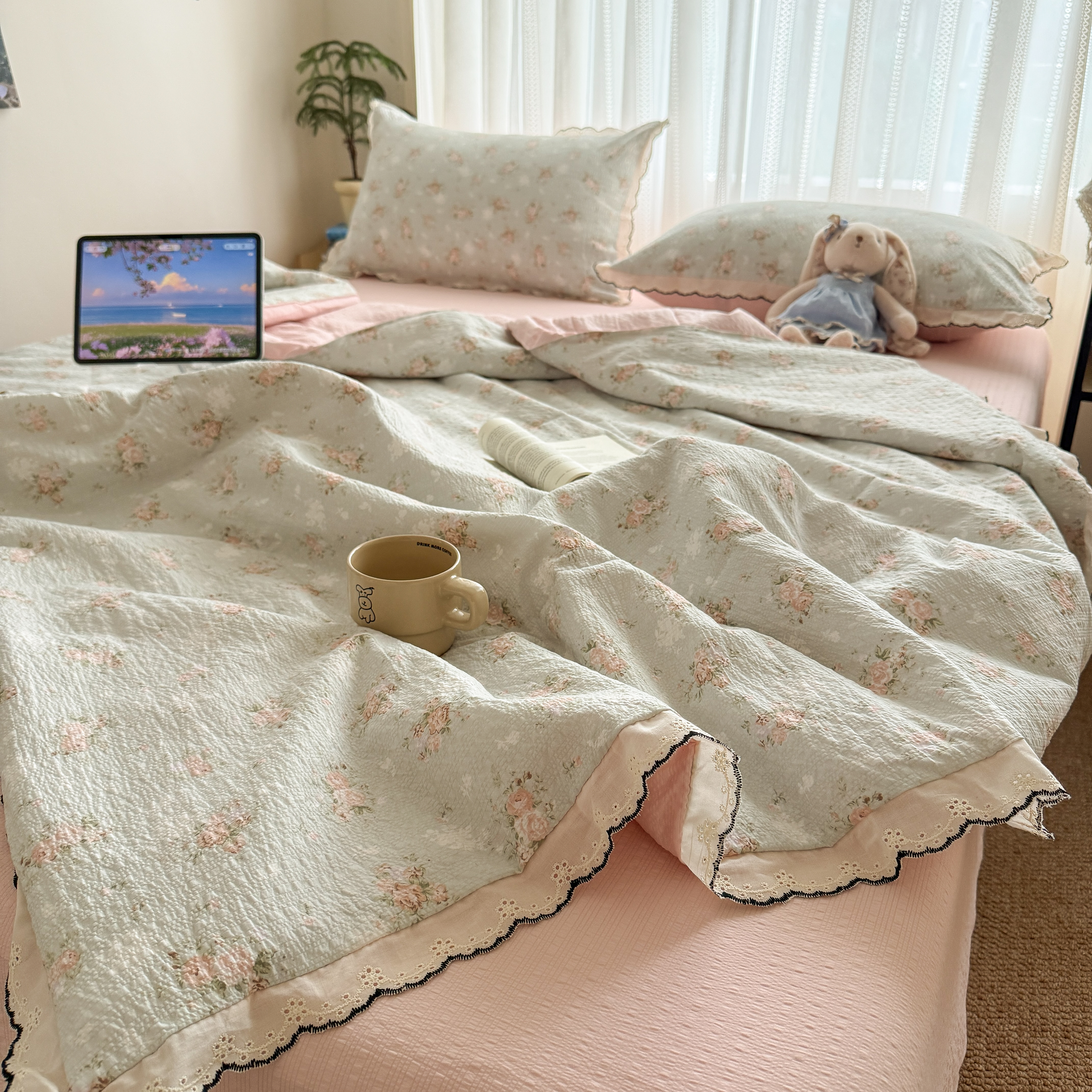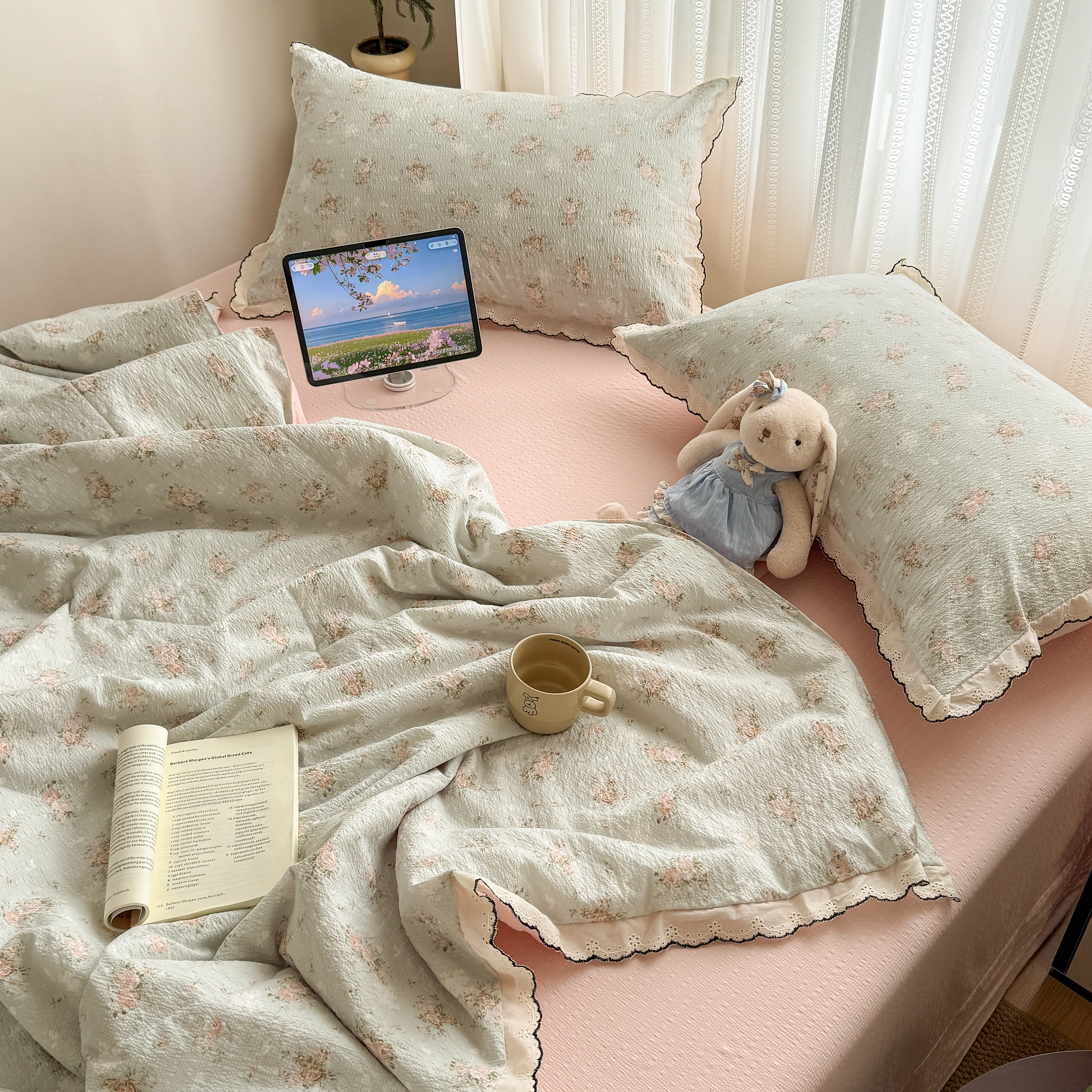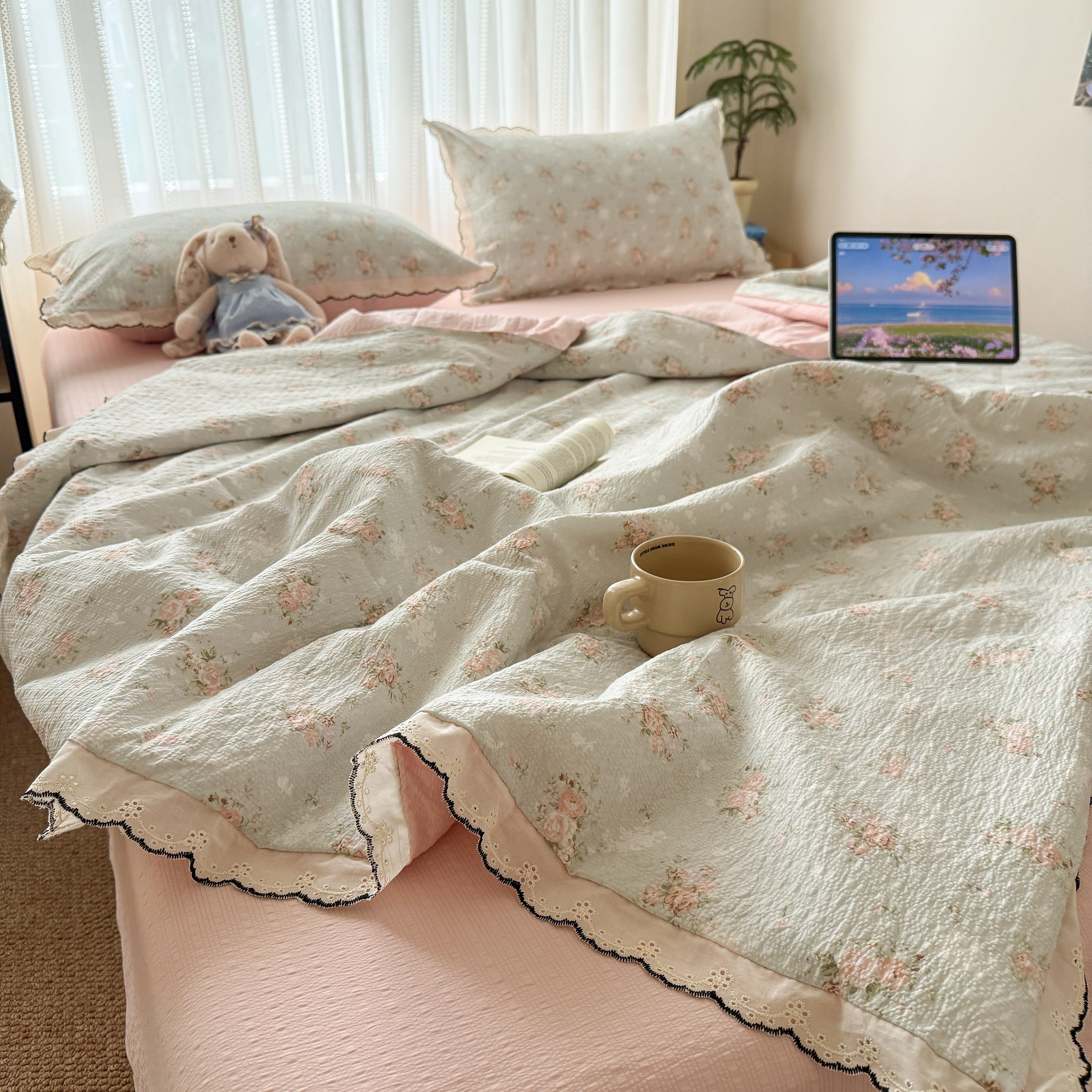 (总)欧尚 2026新款花边云感棉夏被床盖四件套,春辰绿,朵真,绯常,利莲,密朵,南朵,晴川木也