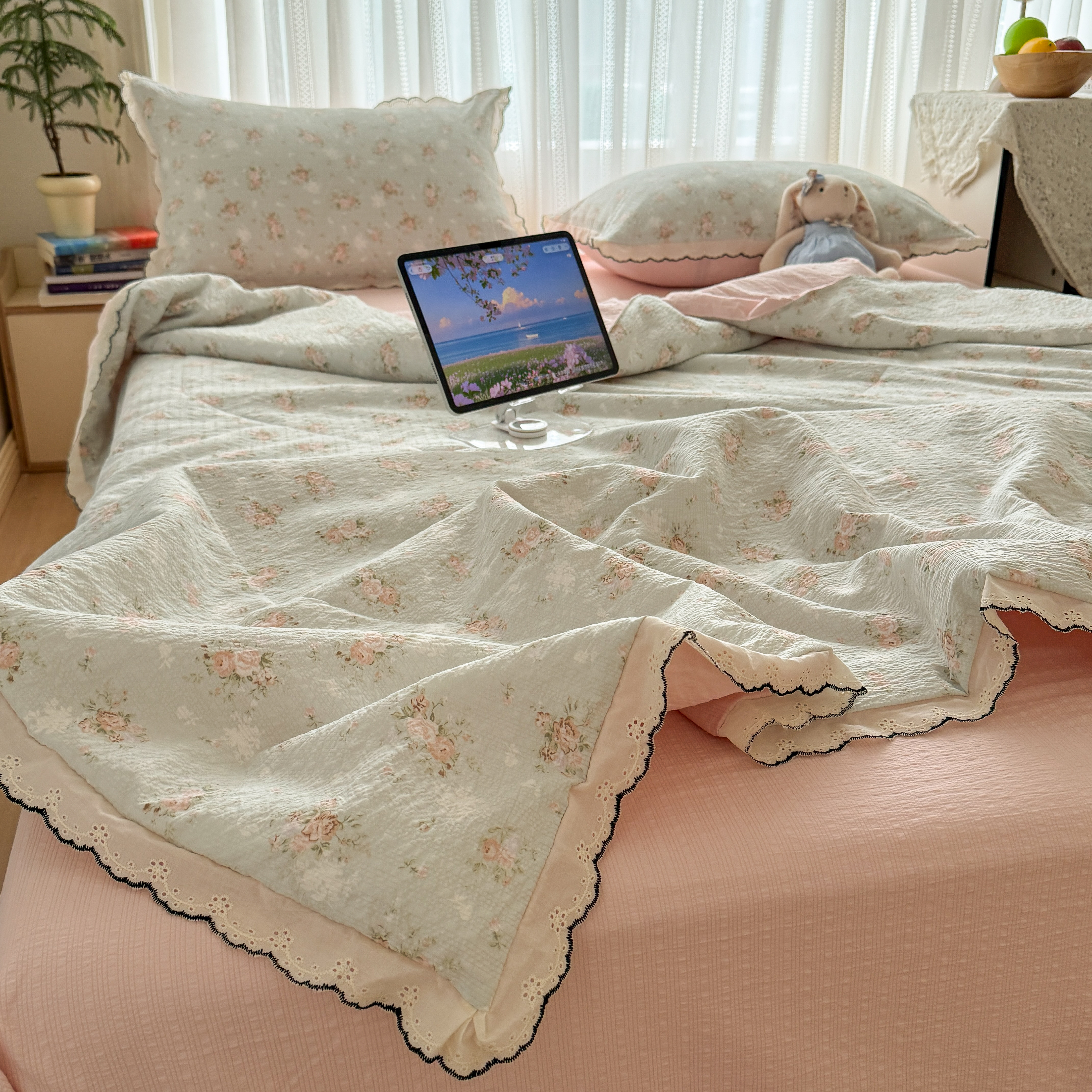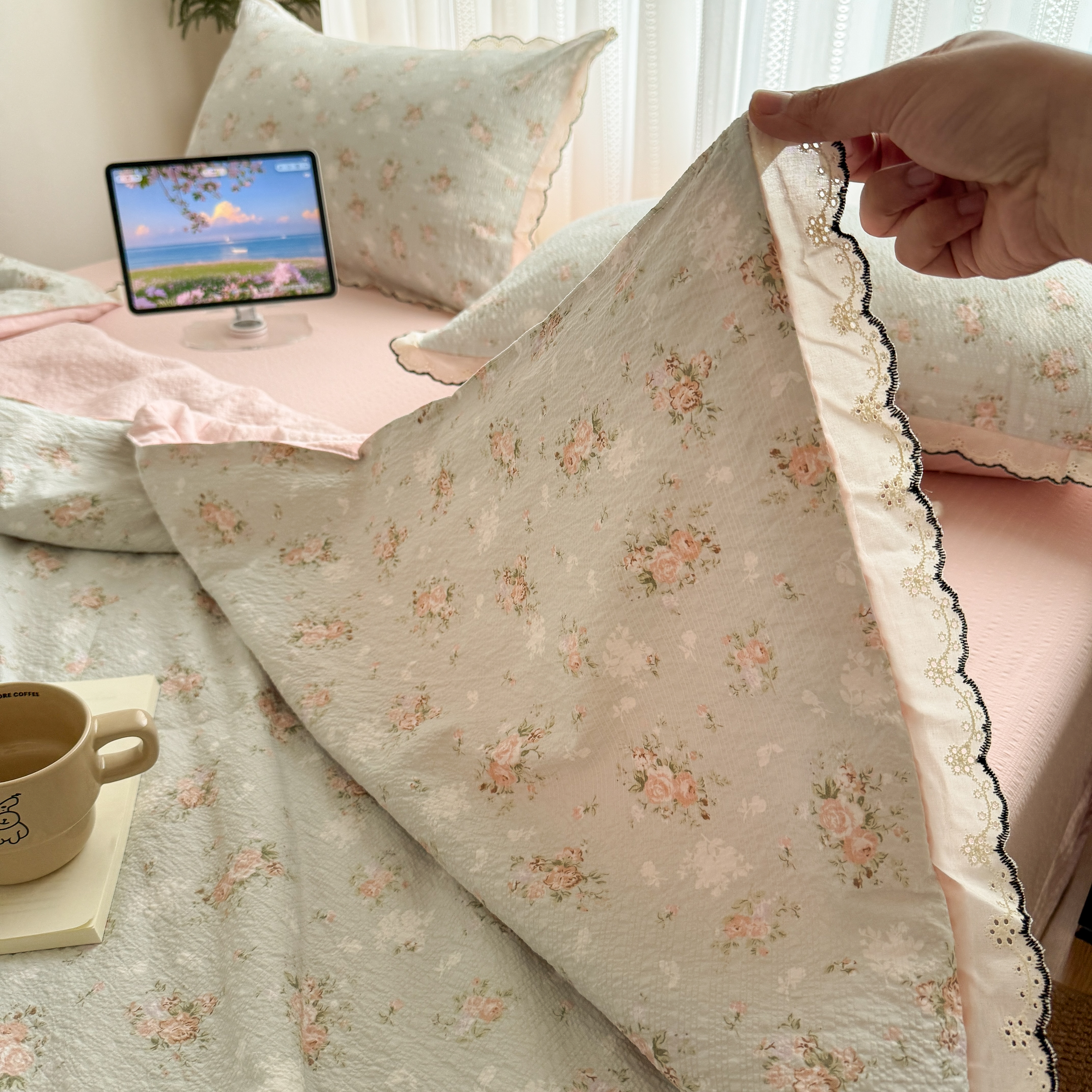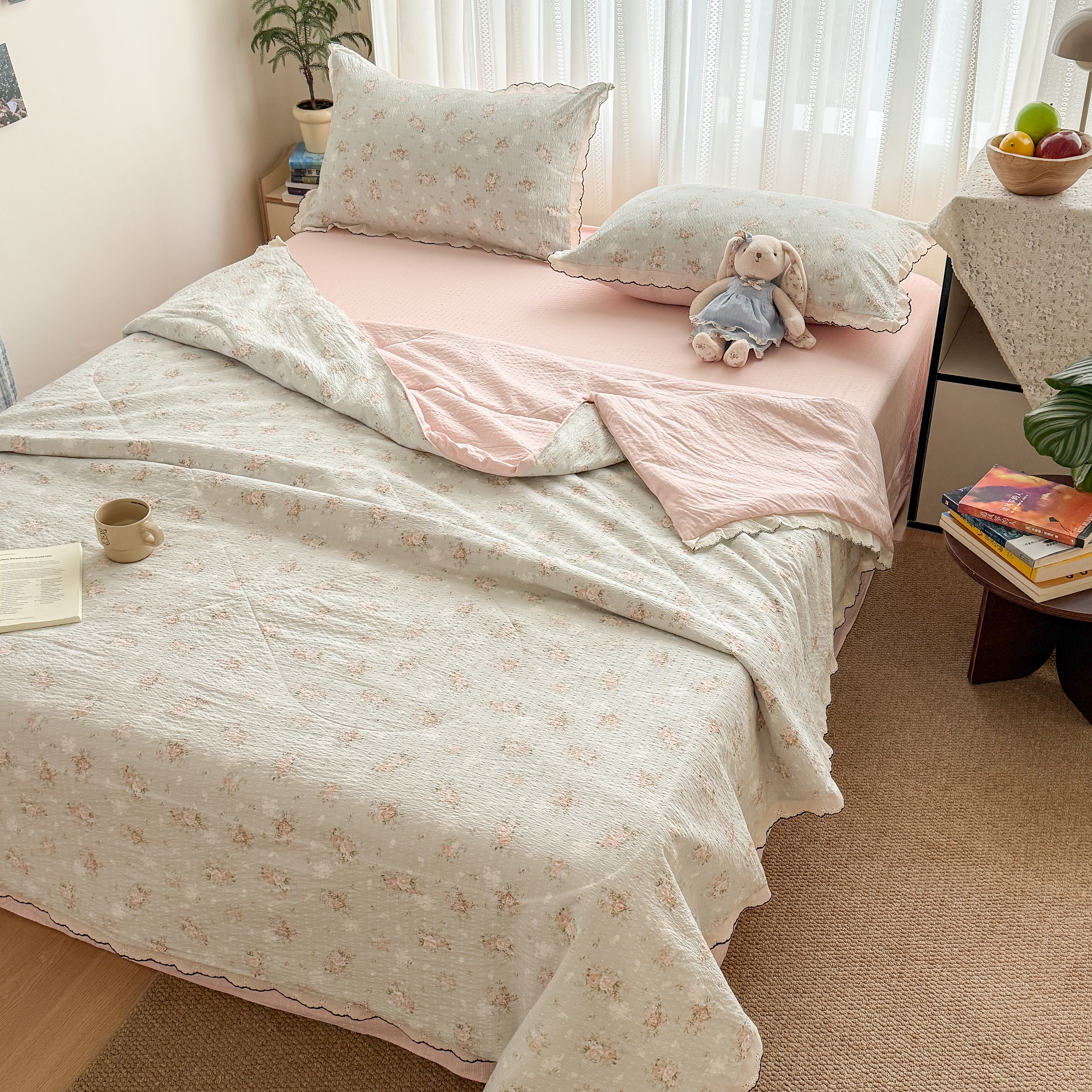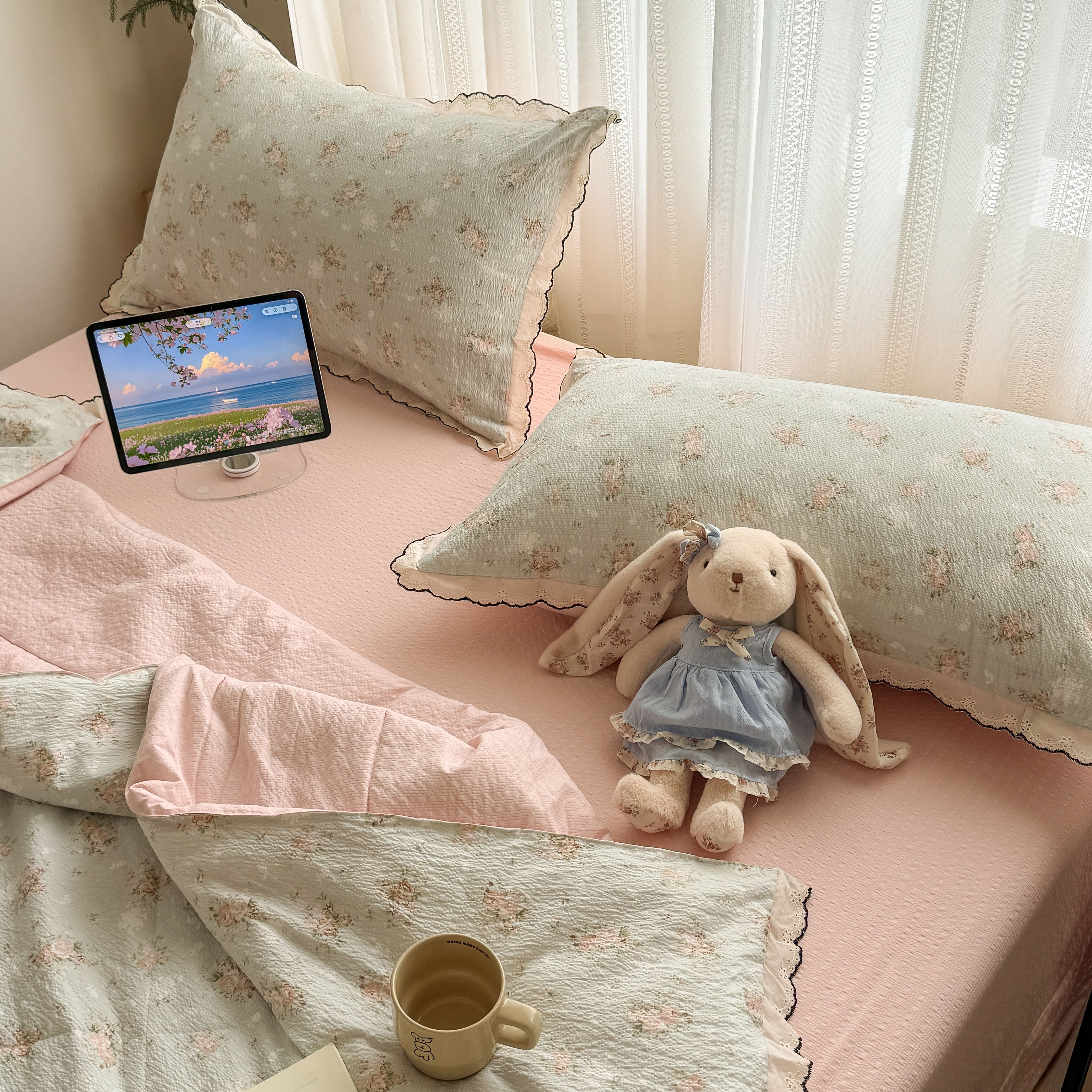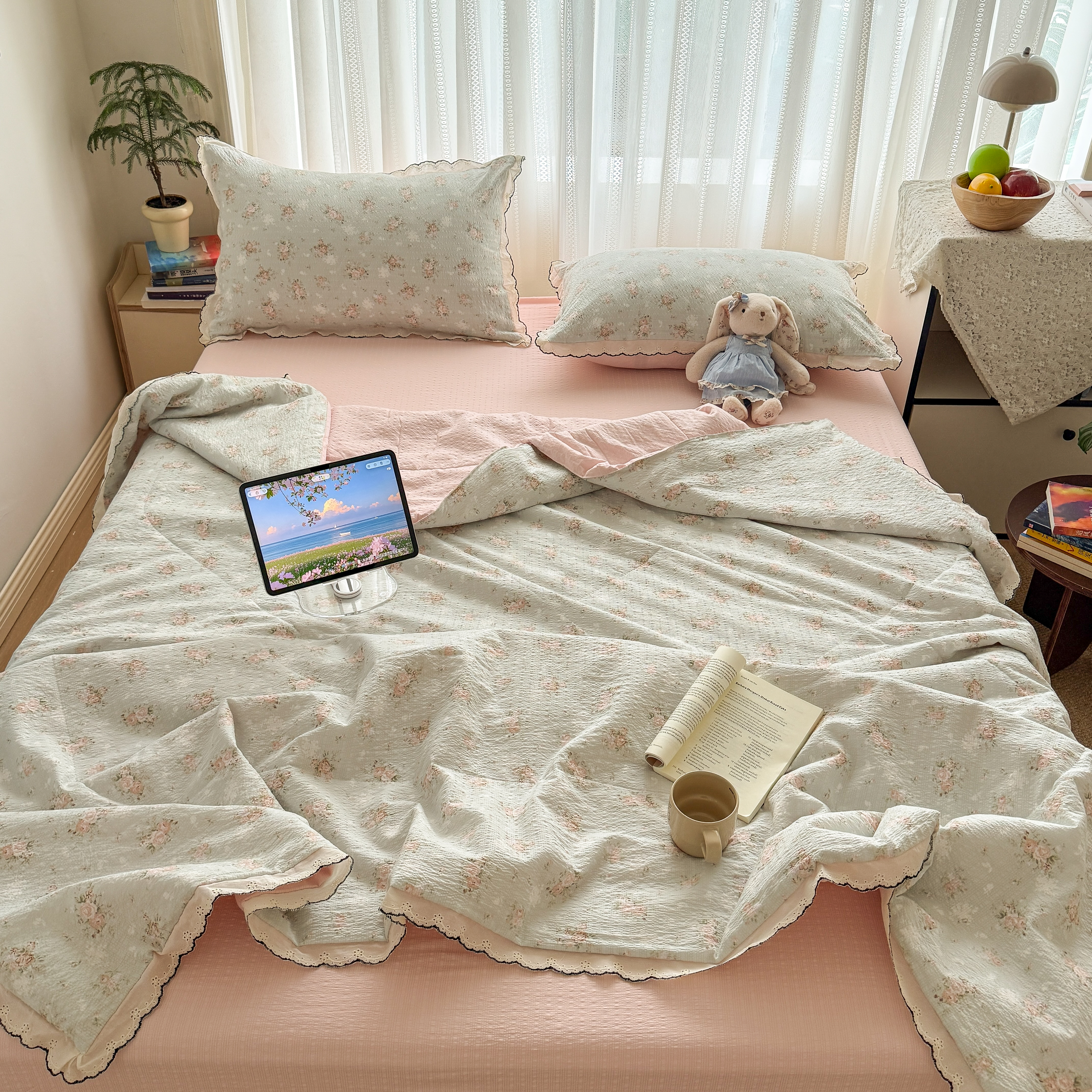 (总)欧尚 2026新款花边云感棉夏被床盖四件套,春辰绿,朵真,绯常,利莲,密朵,南朵,晴川木也