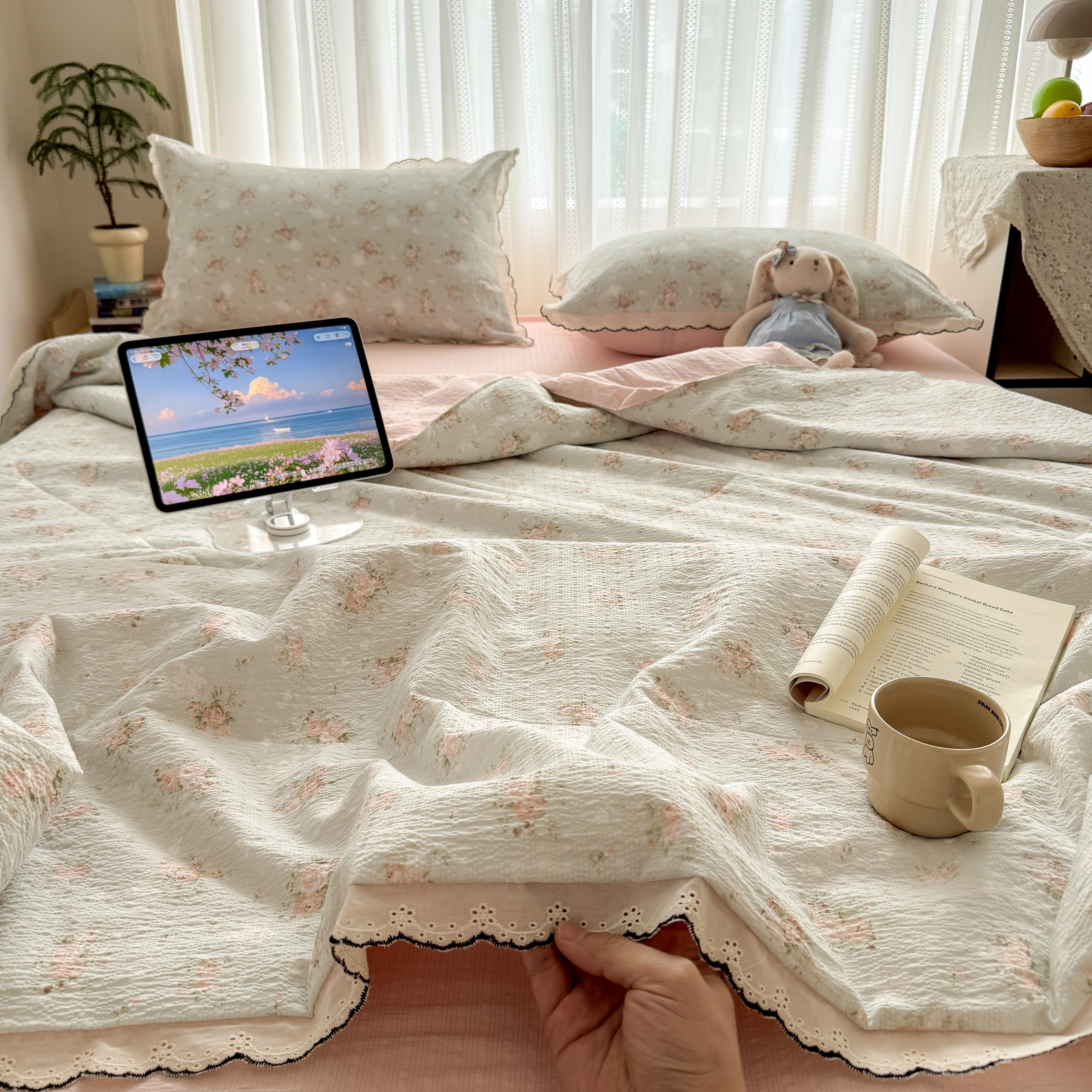欧尚 2026新款蕾丝花边夏被款四件套 柔诗意