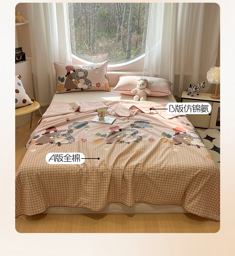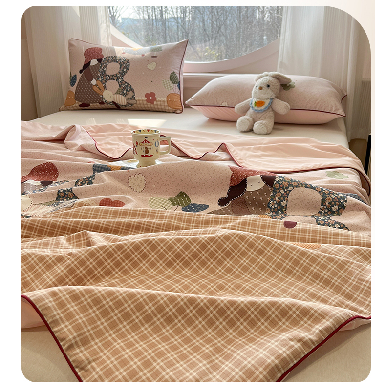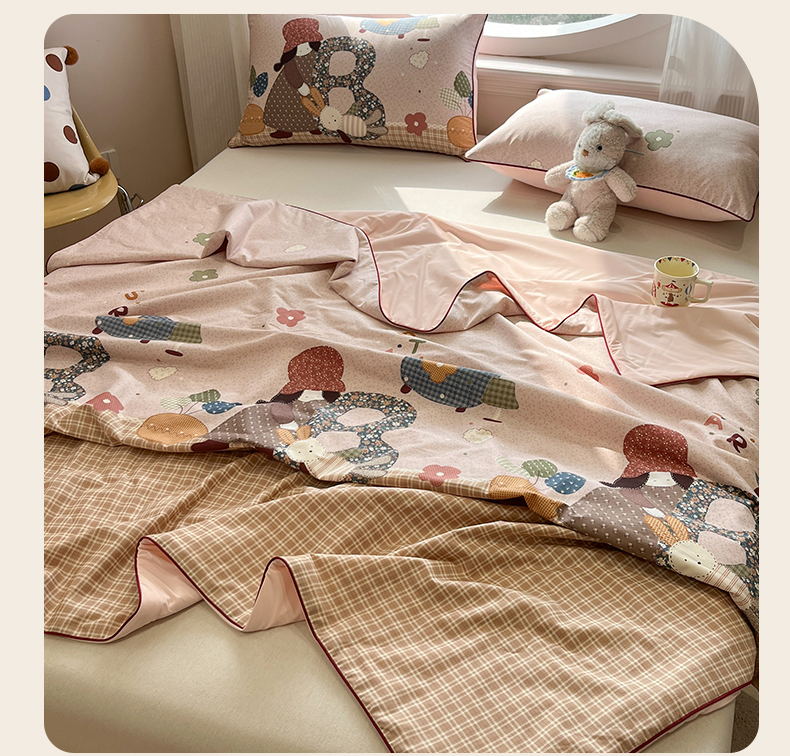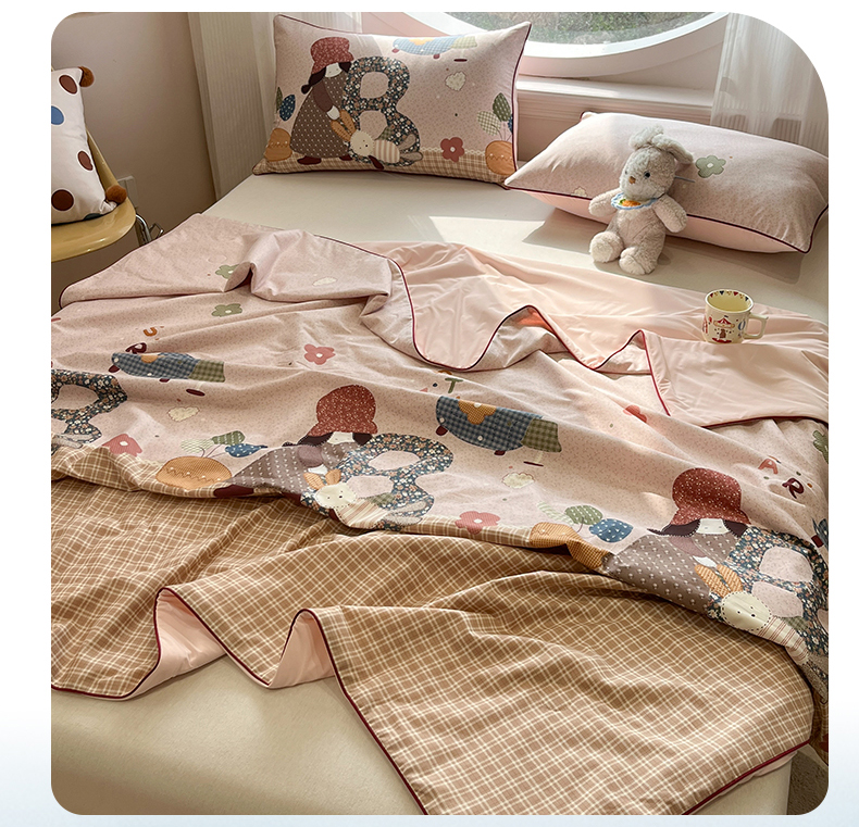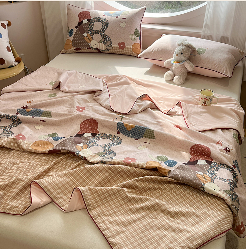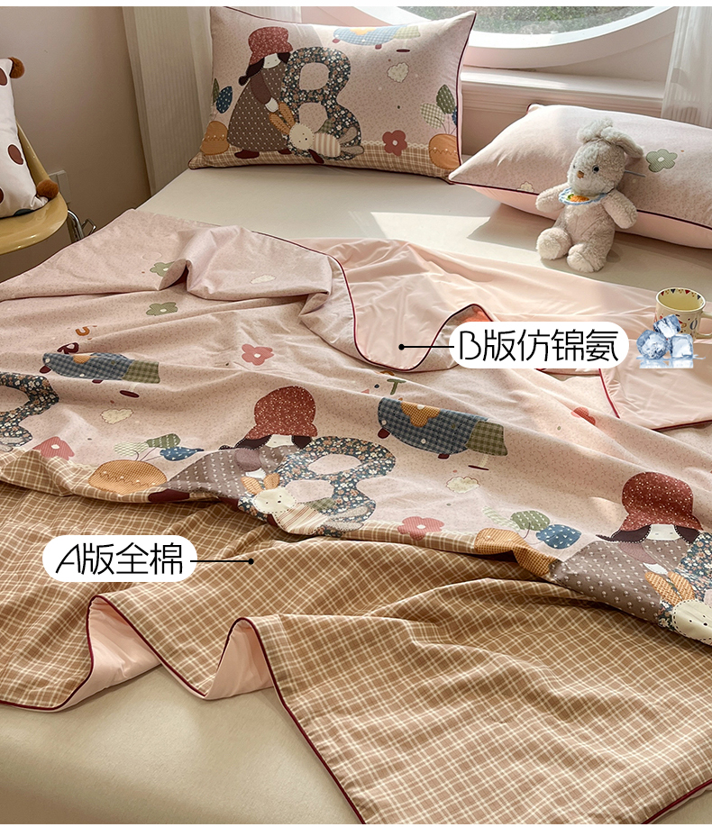 被子 > 夏被 > 羚羊语家纺 2026新款全棉印花仿锦氨凉感丝夏被100纯棉空调被卡通两用多功能被子被芯小冰皮冰淇淋夏凉被 苏西的兔子