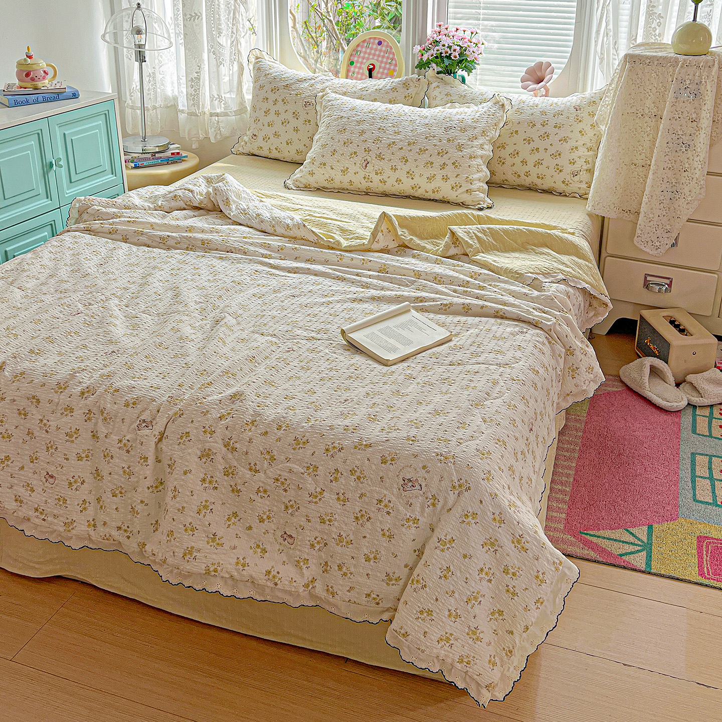 (总)仟网汇 2026新款云感木棉皱皱纱全棉花边款夏被四件套,豆蔻,百福兰,波点小兔粉,初恋,春天里,蝴蝶梦,花园兔,蜡笔画,莱茵河畔,兰黛,若欢-绿,山野栀子,素颜,太妃糖,兔小姐,微凉薄荷,小黑兔,心动,郁金香小兔粉,遇见,芝士奶酪,紫爱心,紫苏,小美满,包装,初心黄,粉豹纹,格子樱桃,焦糖小马,山茶花,小南瓜,星星人