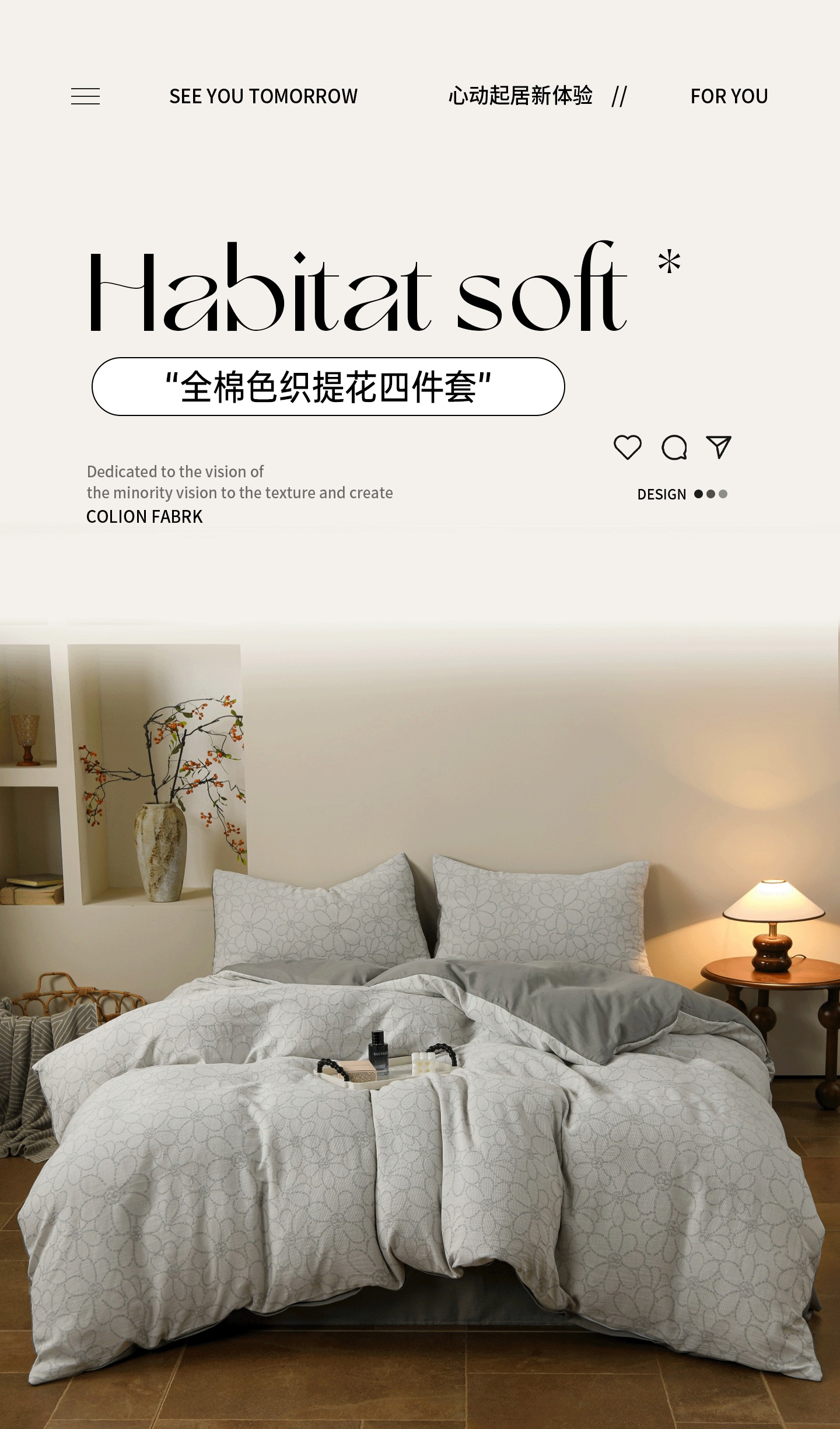 当前位置: 91家纺网 > 商品网购 > 床品套件 > 四件套 > 全棉普通四件套 > (总)菡宝 2026新款人字纹全棉色织提花四件套-赫尔墨斯
