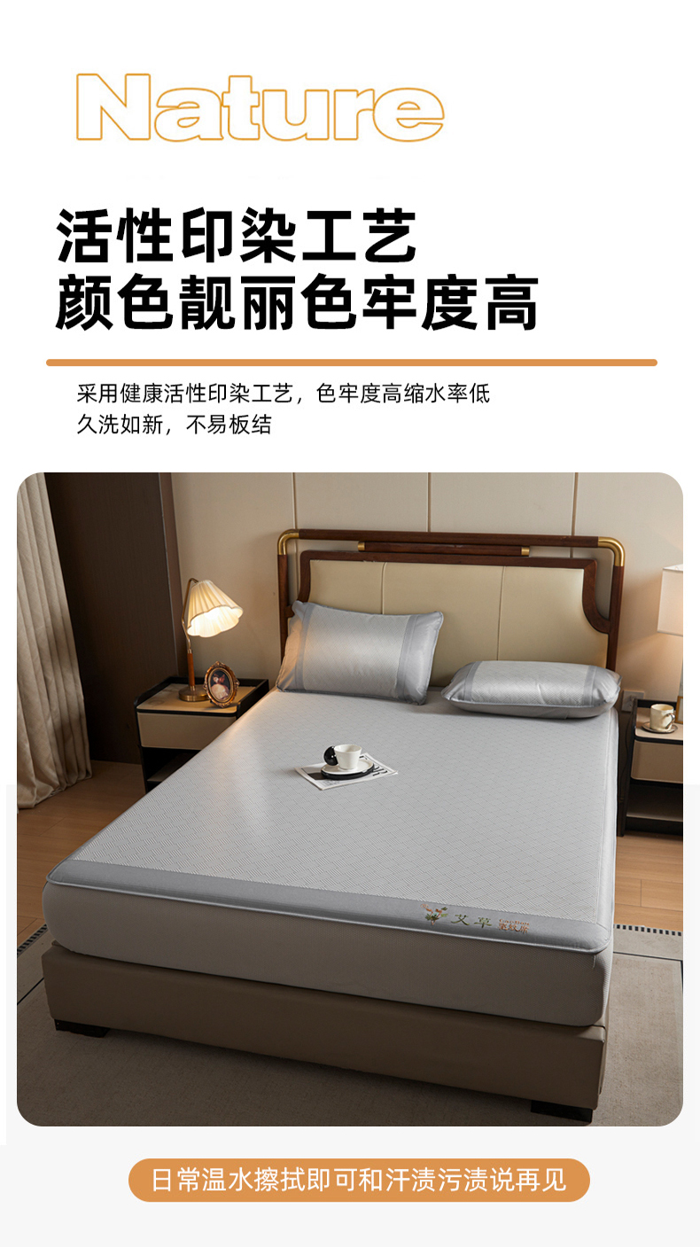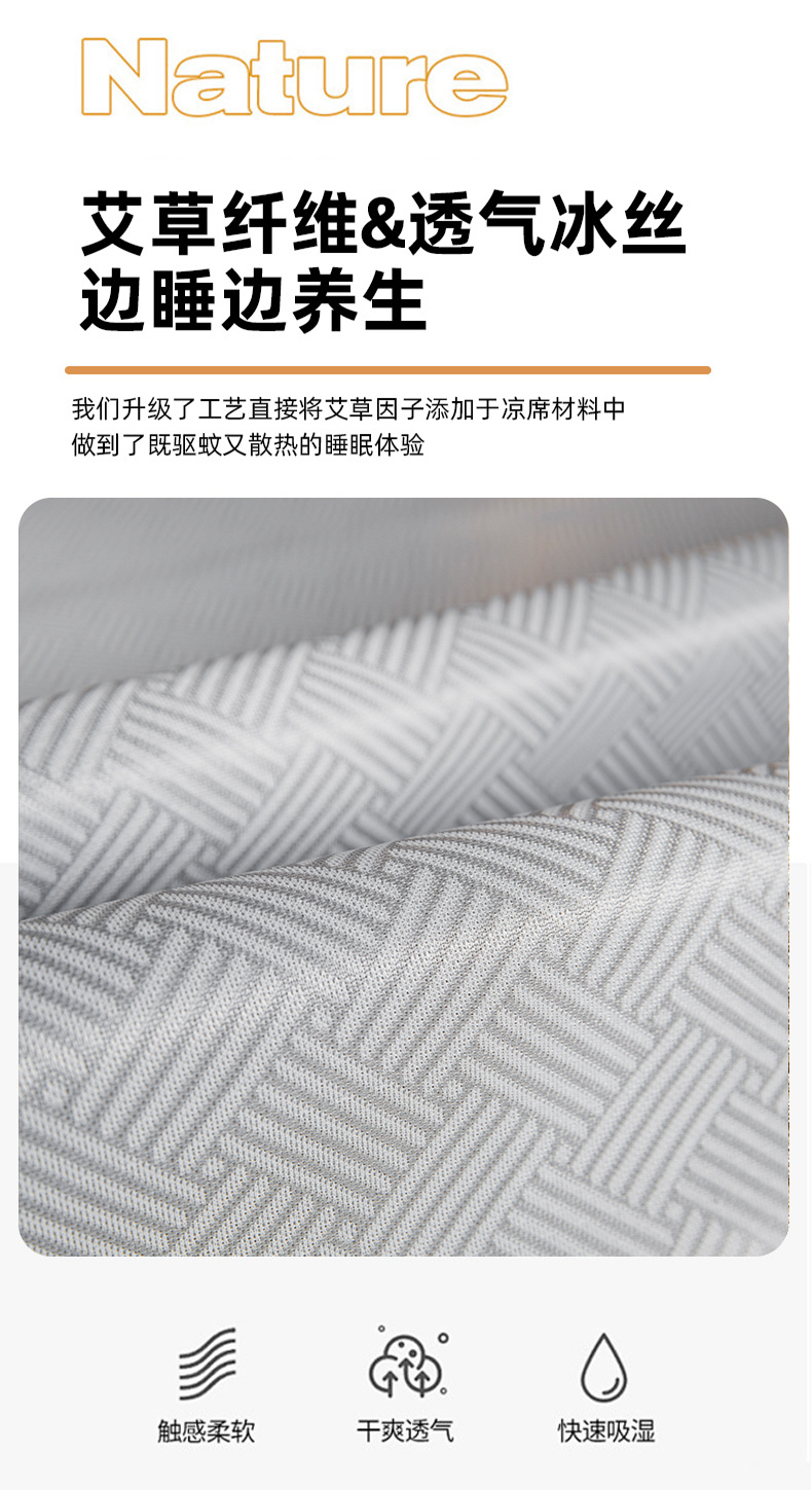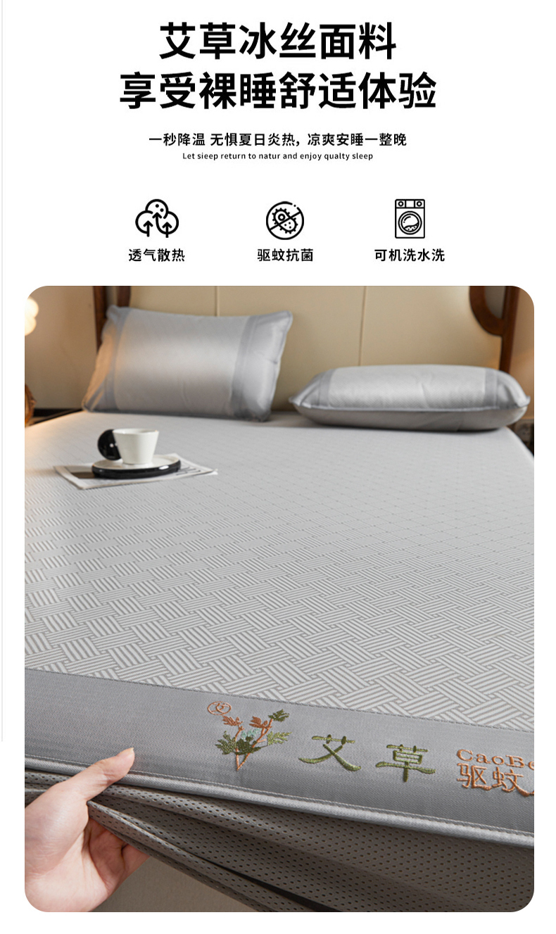 • 91家纺网 家纺一手货源 找家纺 航途席业 2025新款凉席三明治刺绣可水洗碳光冰丝席宽包边艾香系列 艾香冰丝席饼干-灰