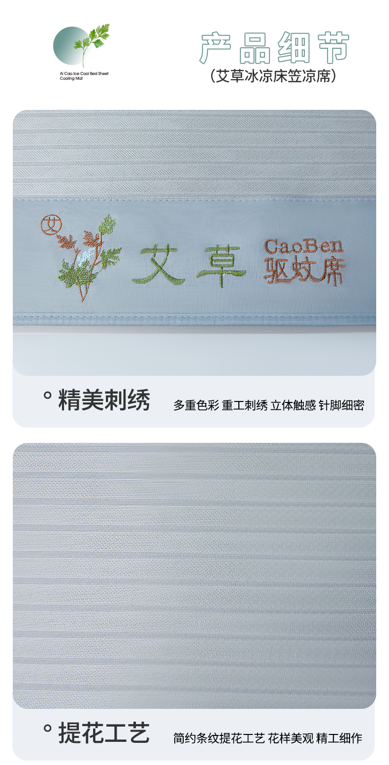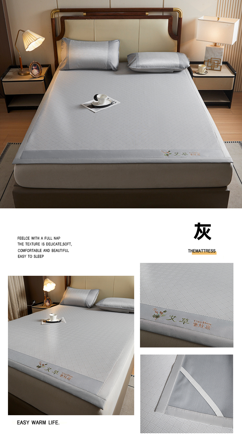 • 91家纺网 家纺一手货源 找家纺 航途席业 2025新款凉席三明治刺绣可水洗碳光冰丝席宽包边艾香系列 艾香条纹床席款绅士灰