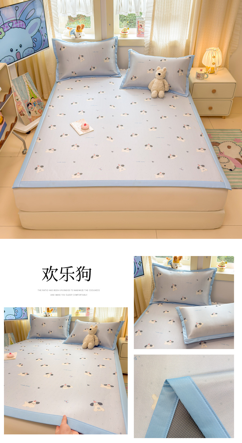 (总)慕尚家纺 2026新款清新凉感冰藤席床笠款,小福气,春日小兔,福禄小狗,蝴蝶结,活力小猫,开心约克,马踏祥光,梦幻紫花,魔法小熊,情人草,碎冰蓝,天使星仔,顽皮兔,小猫耶,小毛球,星星宝宝,星星熊,紫气东来
