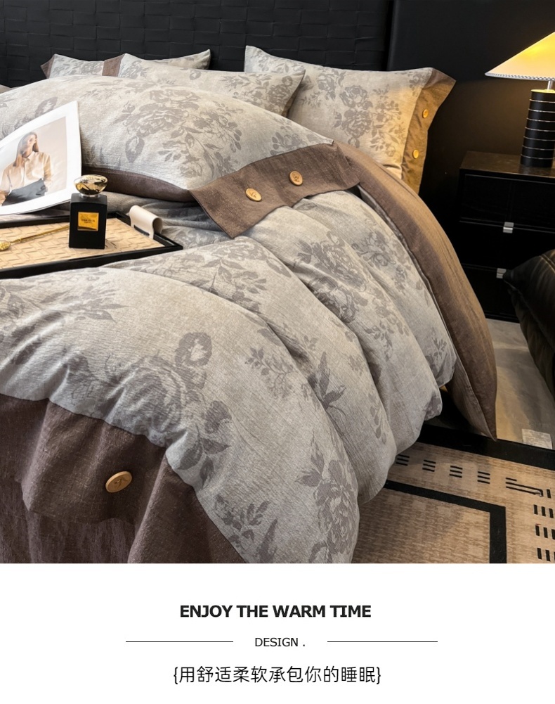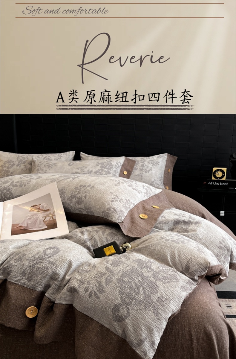 当前位置: 91家纺网 > 商品网购 > 床品套件 > 四件套 > 其它四件套 > 梦舒羽 2026春夏新款A类原麻纽扣四件套加厚被套床单宿舍双人床仿亚麻套件-最新款 古堡花园-咖