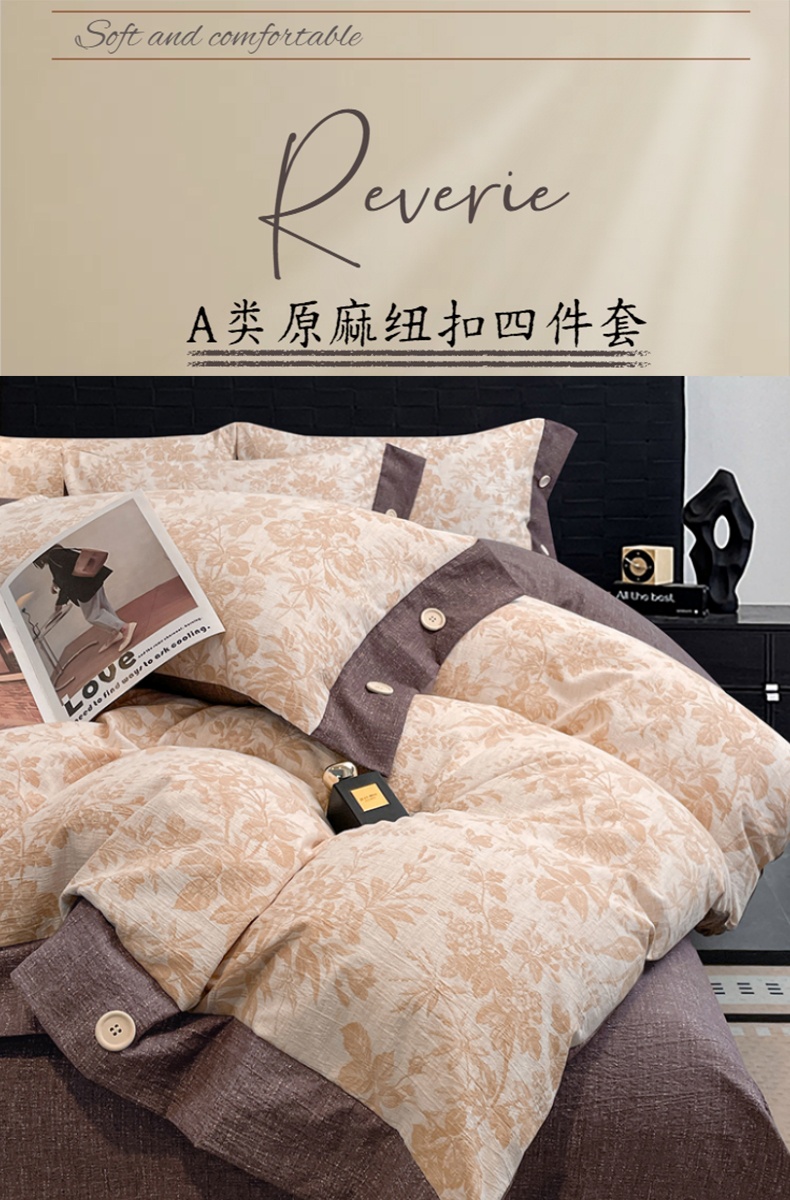 当前位置: 91家纺网 > 商品网购 > 床品套件 > 四件套 > 其它四件套 > 梦舒羽 2026春夏新款A类原麻纽扣四件套加厚被套床单宿舍双人床仿亚麻套件-最新款 忆秋风