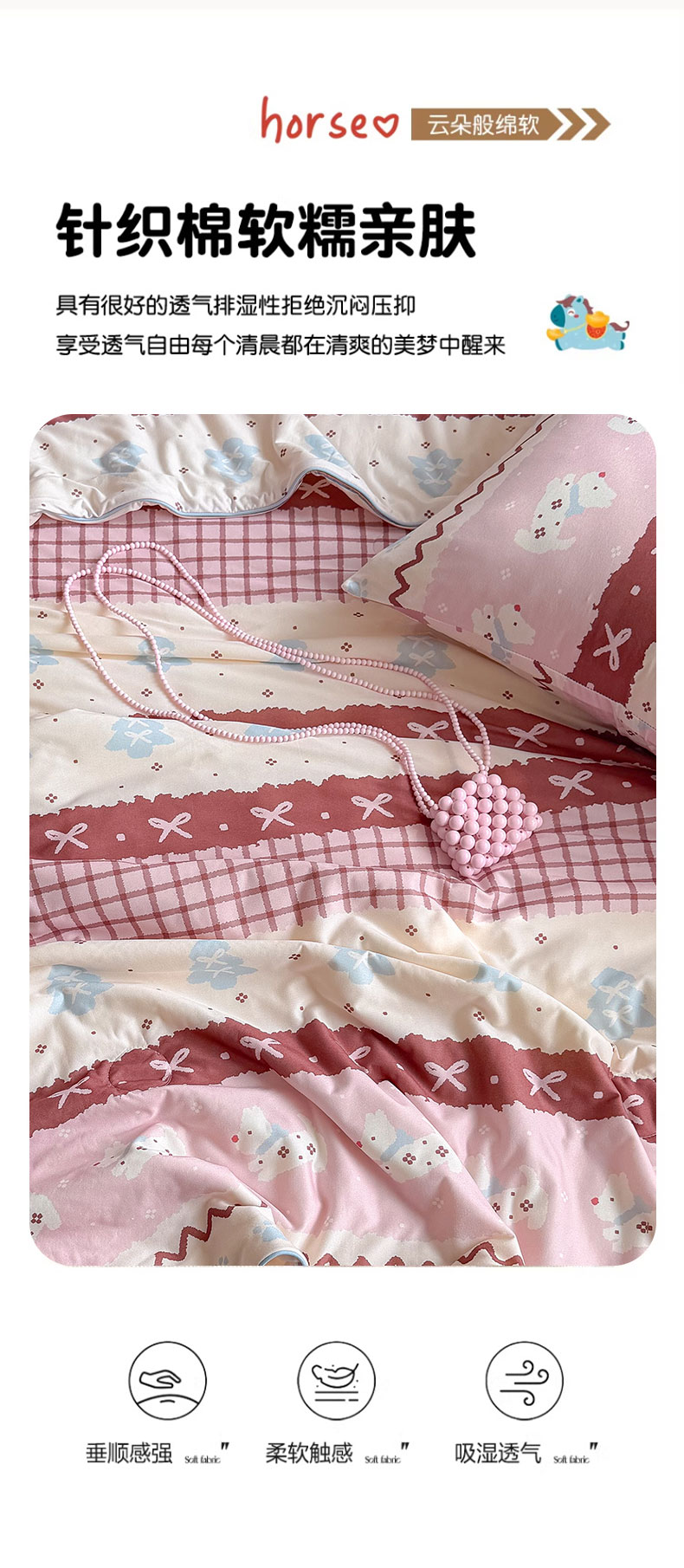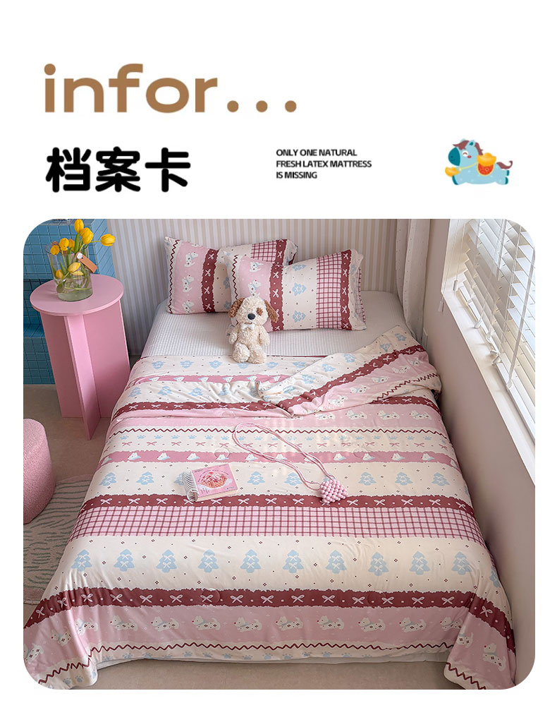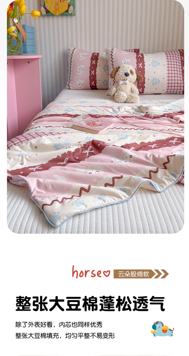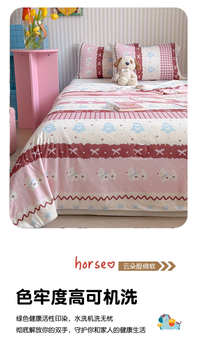 商品名称:桃子家居 2026新款A类卡通小清新奶乎乎高品质牛奶丝软糯针织棉嵌绳工艺夏被系列 针织嵌绳-莓果狗