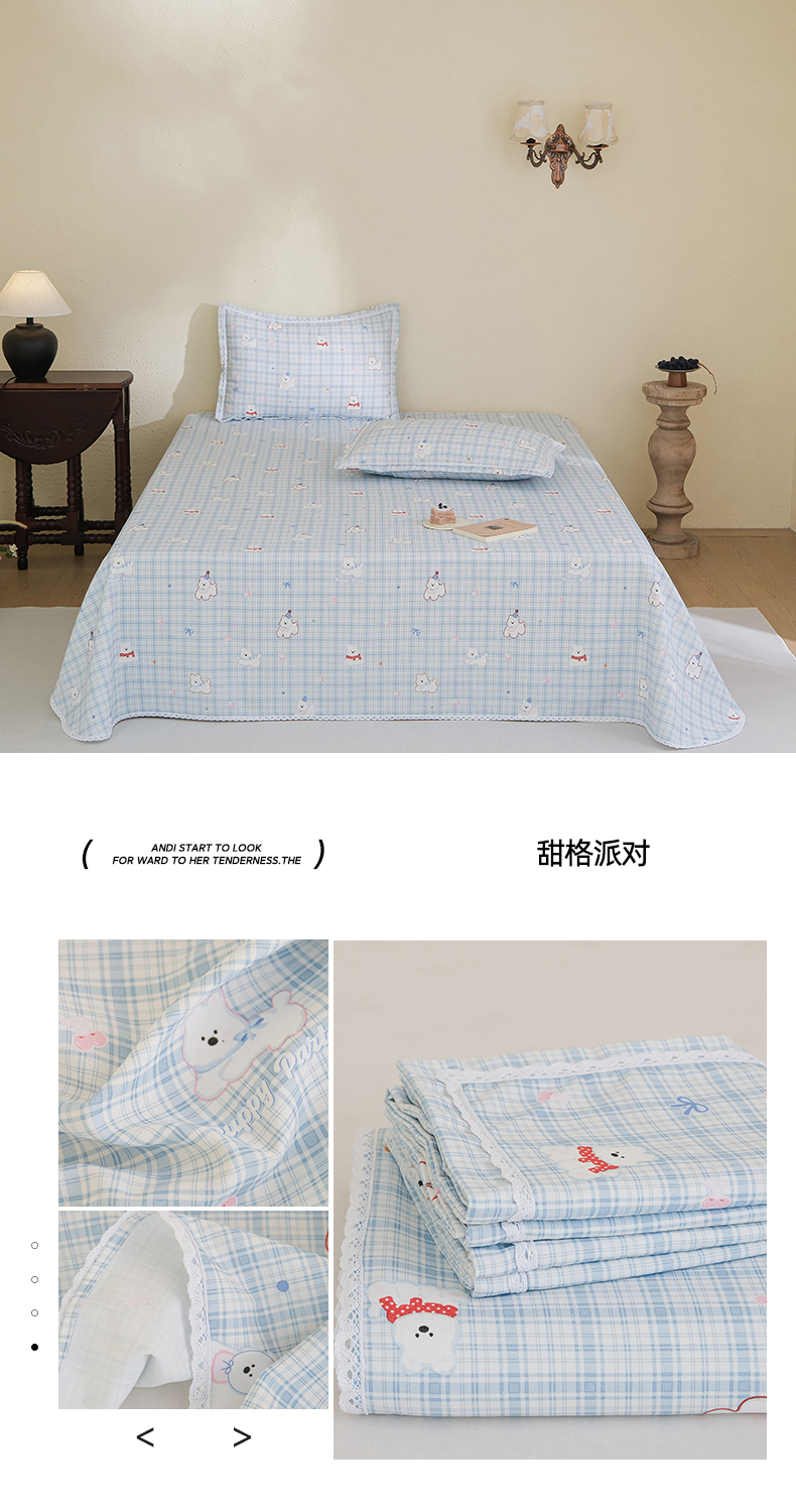 (总)慕绸家纺(原萌宝老粗布厂家) 2026新款原棉细纱工艺款亲肤柔软老粗布床单凉席席子春夏热门款-直播热卖圆角花边款,半夏,豹纹喵,大麦,多巴胺,红苹果乐园,花间熊猫,花漫里,花语萌宠,简约派,快乐星球,快乐鸭,浪漫花语,恋语,铃兰结,绿意,美式腊肠狗,面包小车,魔法星人,墨兰蝶,奶油大白,南瓜派,千禧马,秋日森林,甜橙日记,甜格派对,甜品小熊,晚安熊,香可儿,小花熊,尤米,紫鸢,KT蛋糕,组合