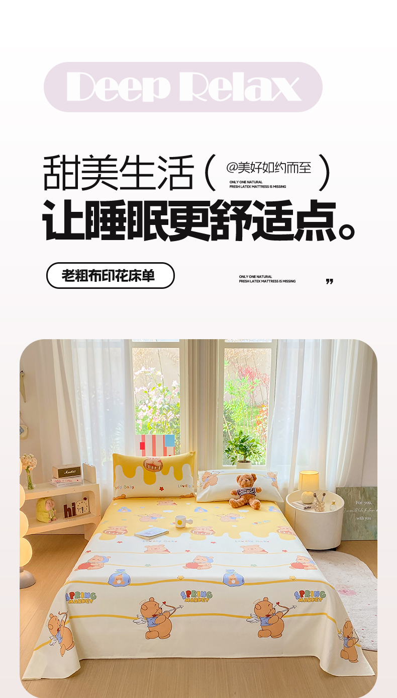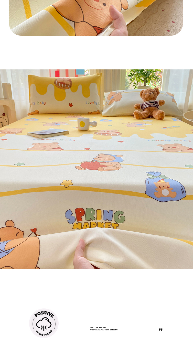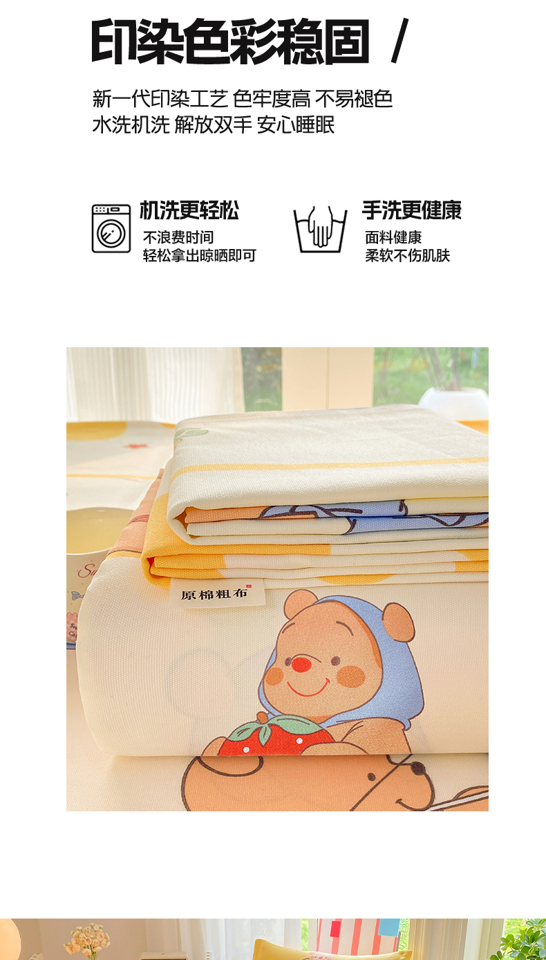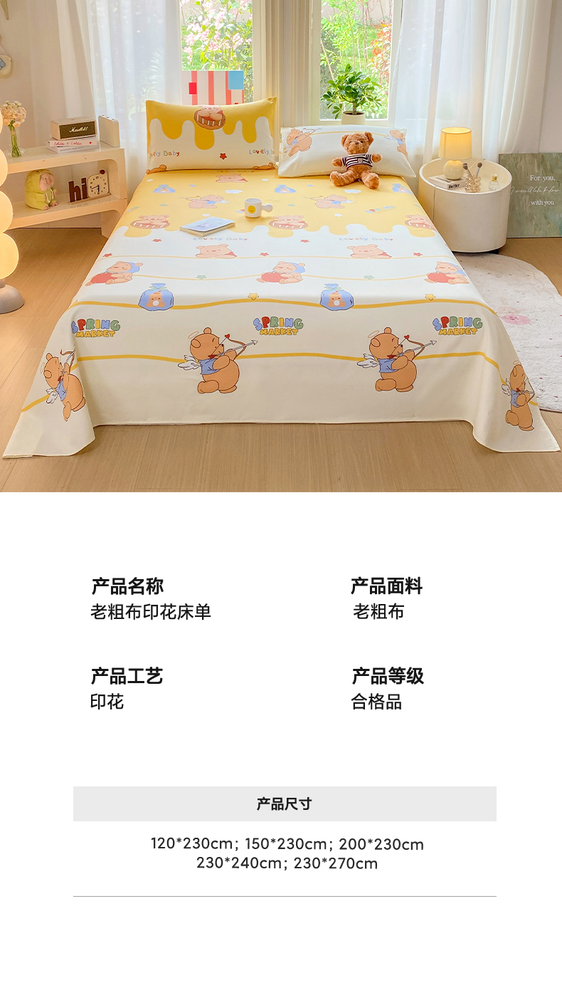 • 91家纺网 家纺一手货源 找家纺 晓时候 20226新款细纱原棉老粗布床单印花床单单件凉席三件套 萌趣小熊