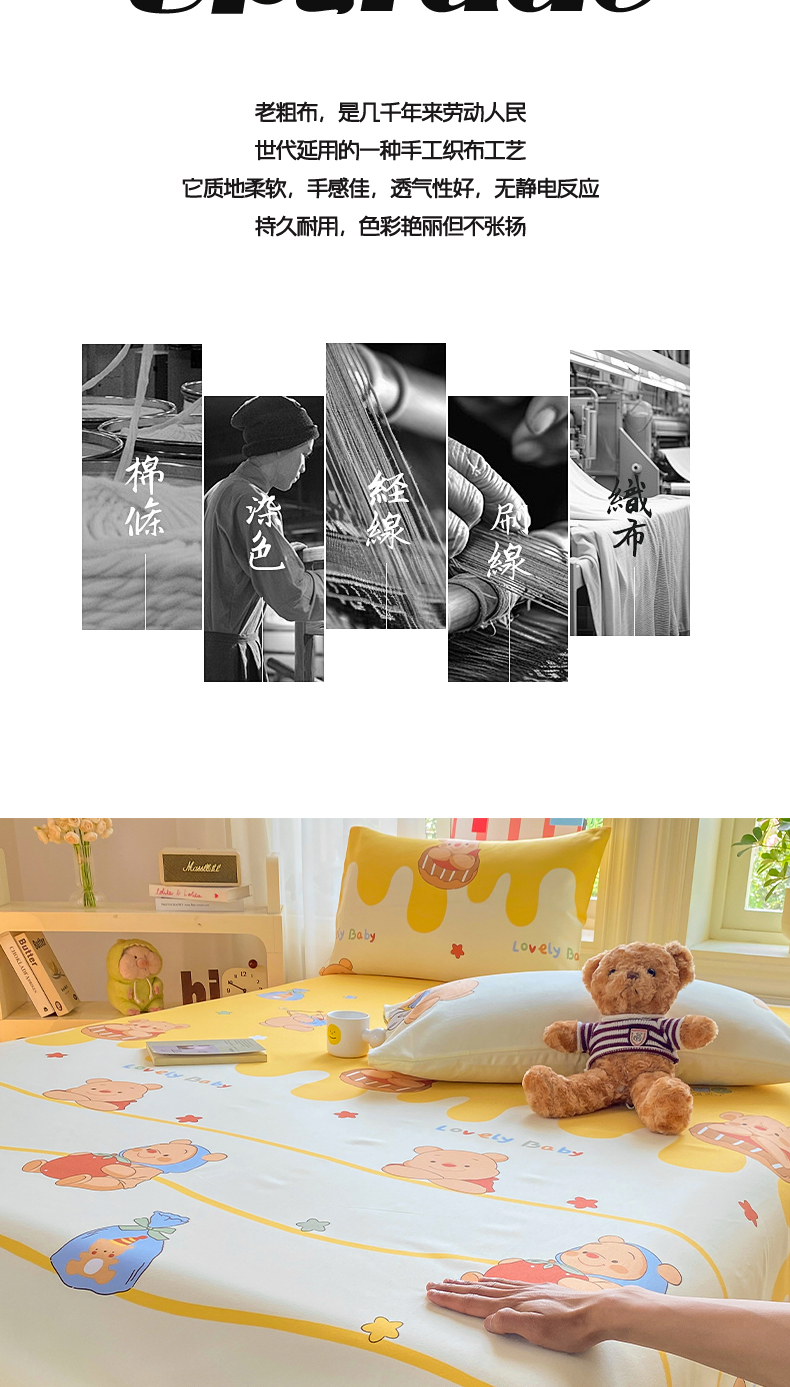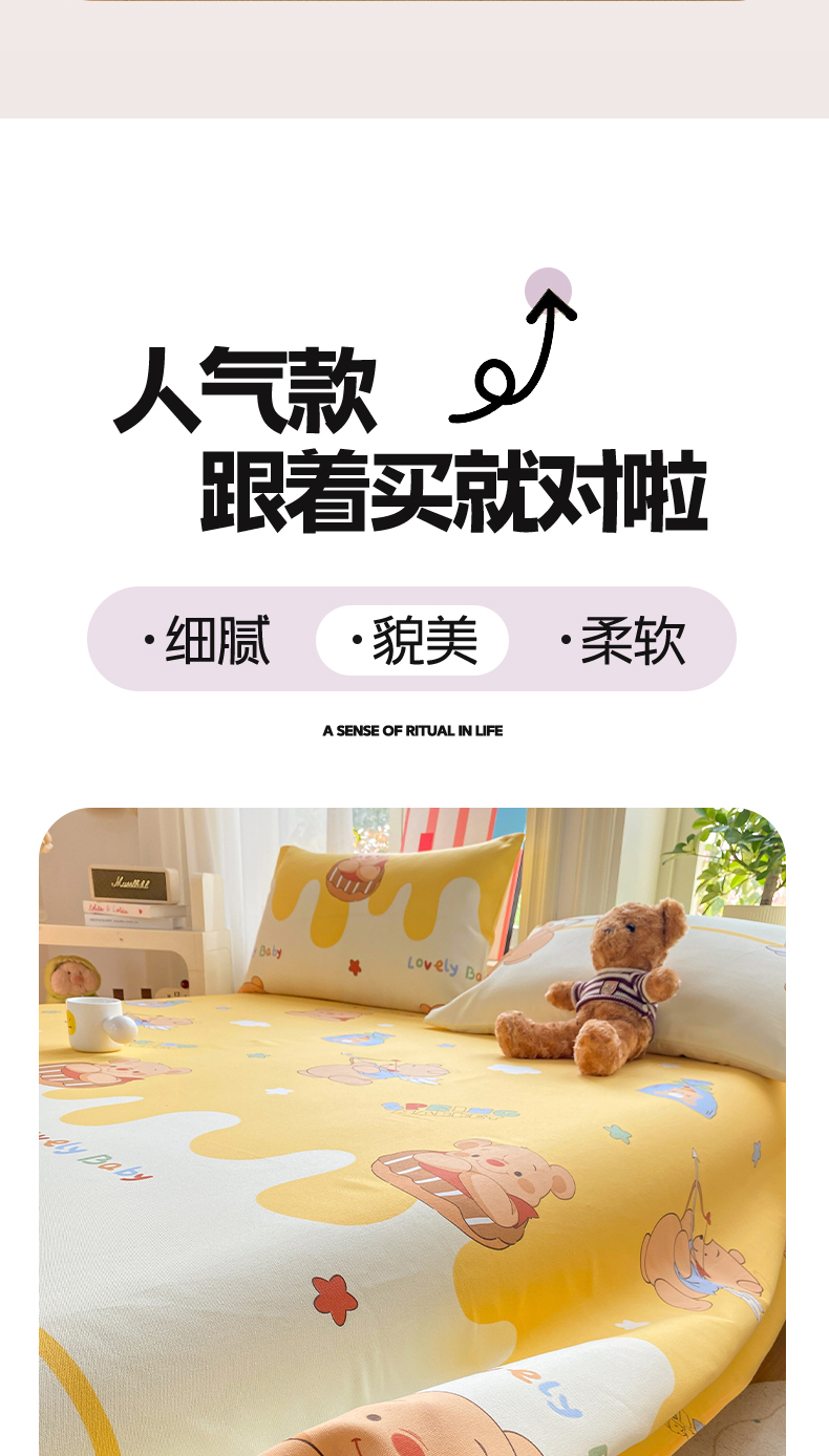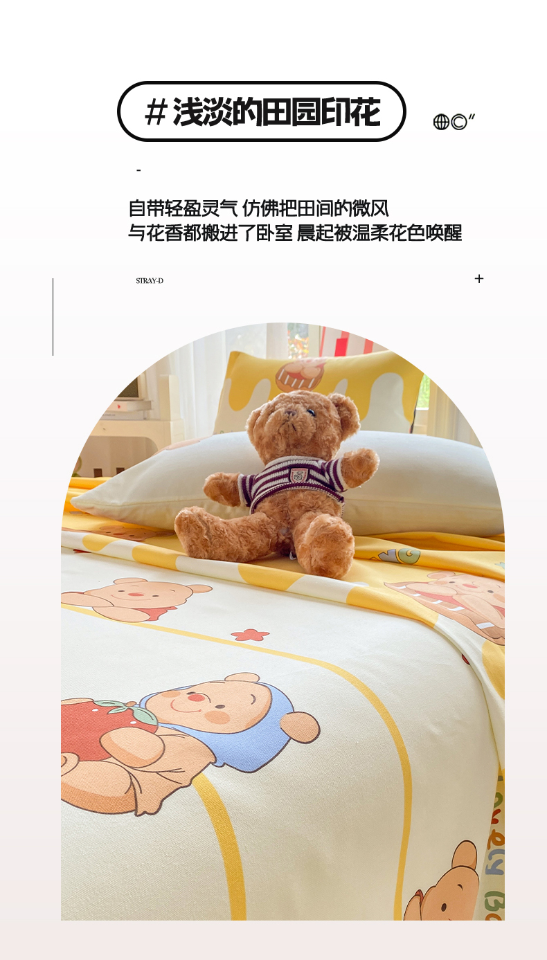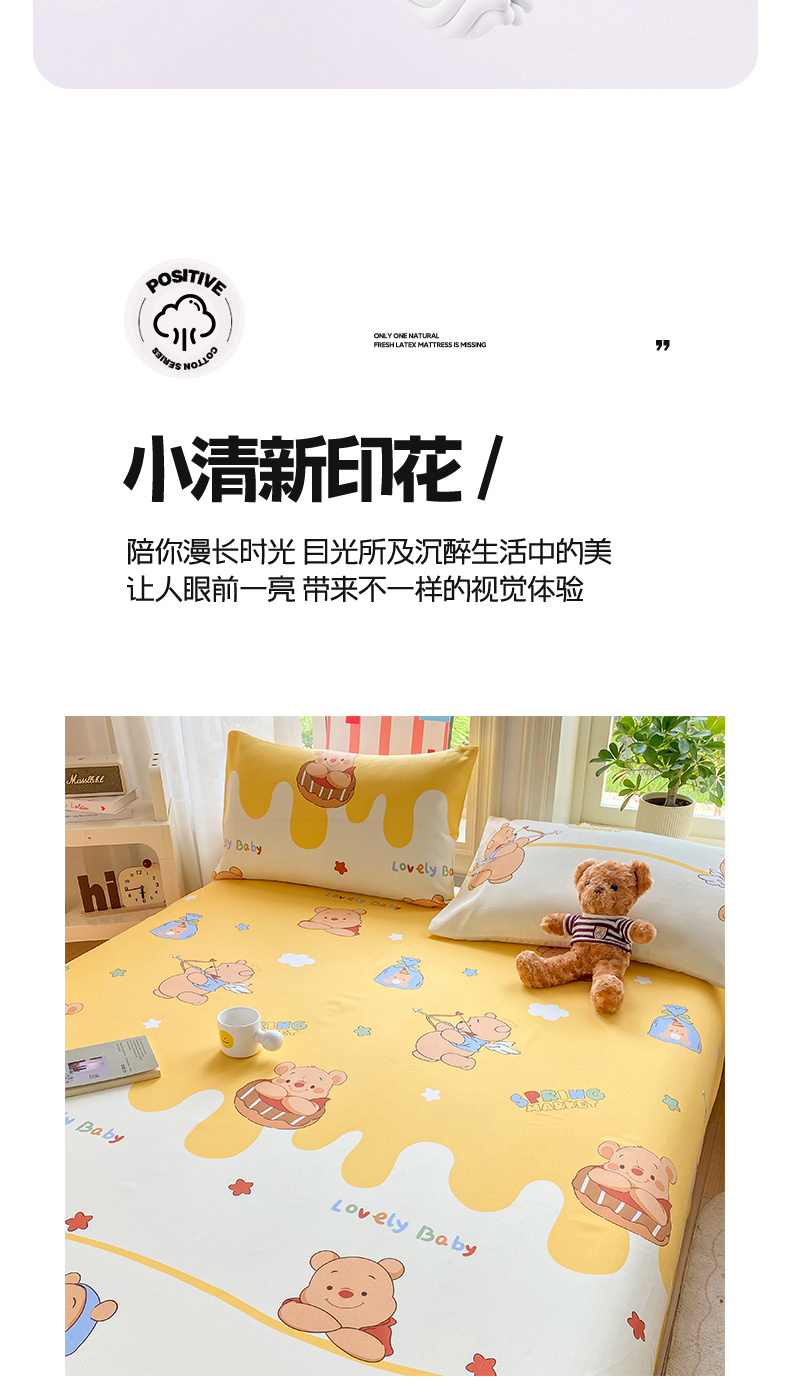 • 91家纺网 家纺一手货源 找家纺 晓时候 20226新款细纱原棉老粗布床单印花床单单件凉席三件套 萌趣小熊