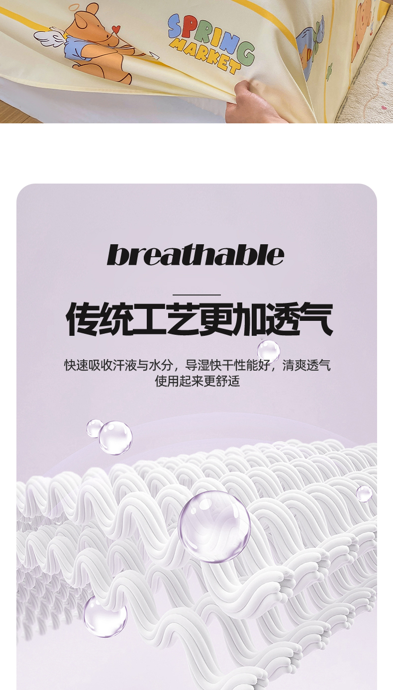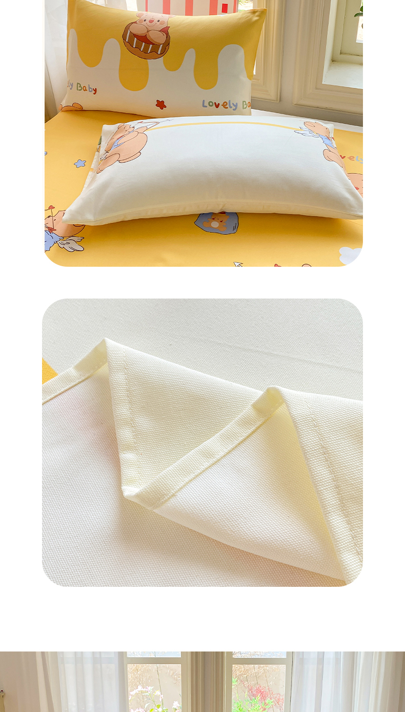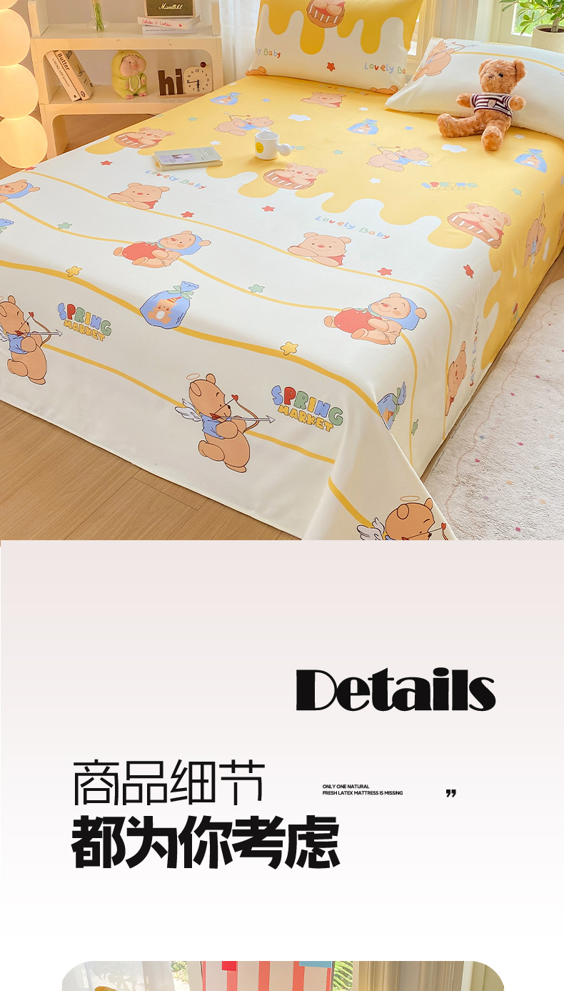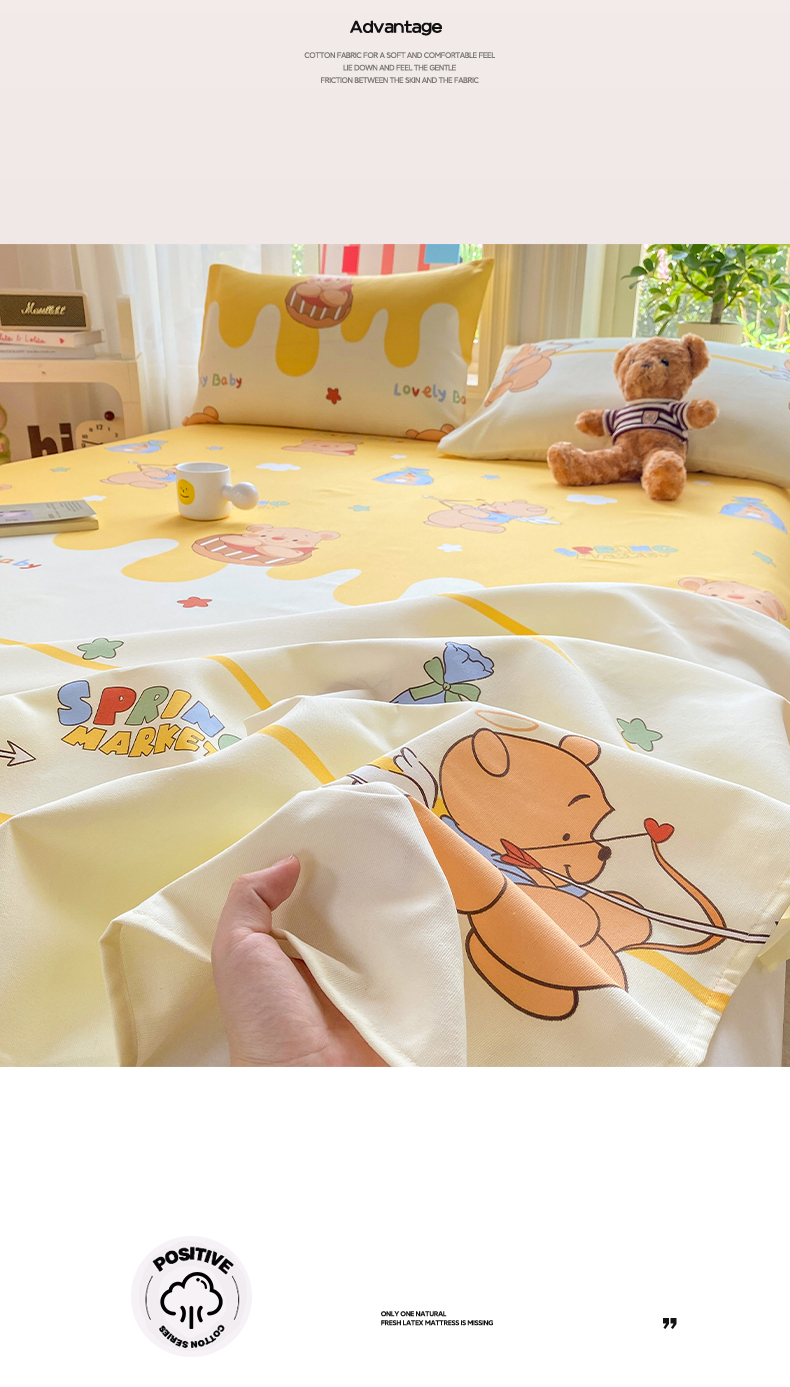 • 91家纺网 家纺一手货源 找家纺 晓时候 20226新款细纱原棉老粗布床单印花床单单件凉席三件套 萌趣小熊