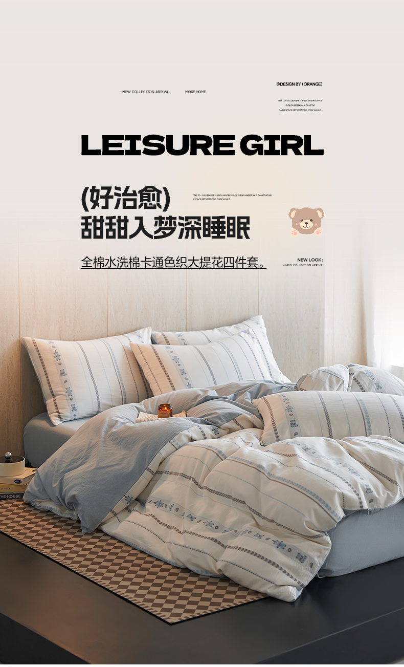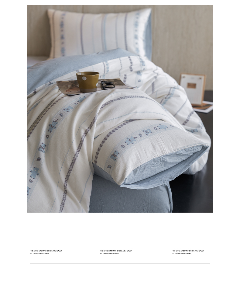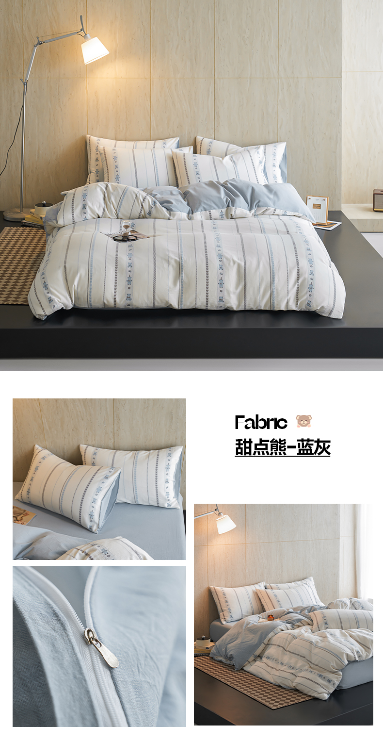 当前位置: 91家纺网 > 商品网购 > 床品套件 > 四件套 > 全棉普通四件套 > 如一 2026新款全棉纯棉水洗棉卡通色织大提花四件套 甜点熊-蓝灰