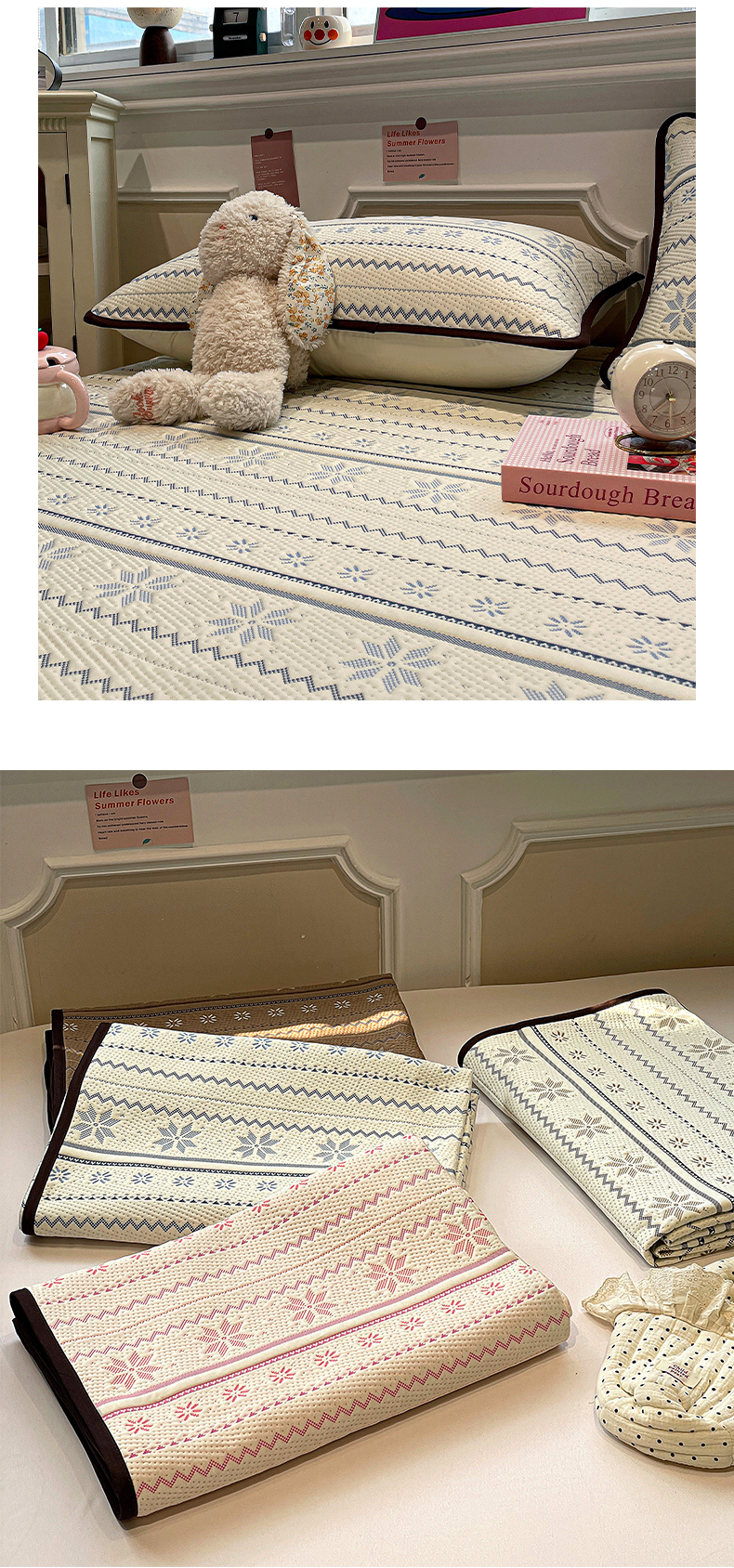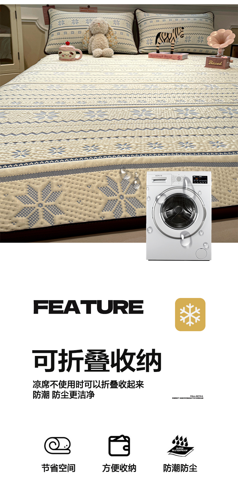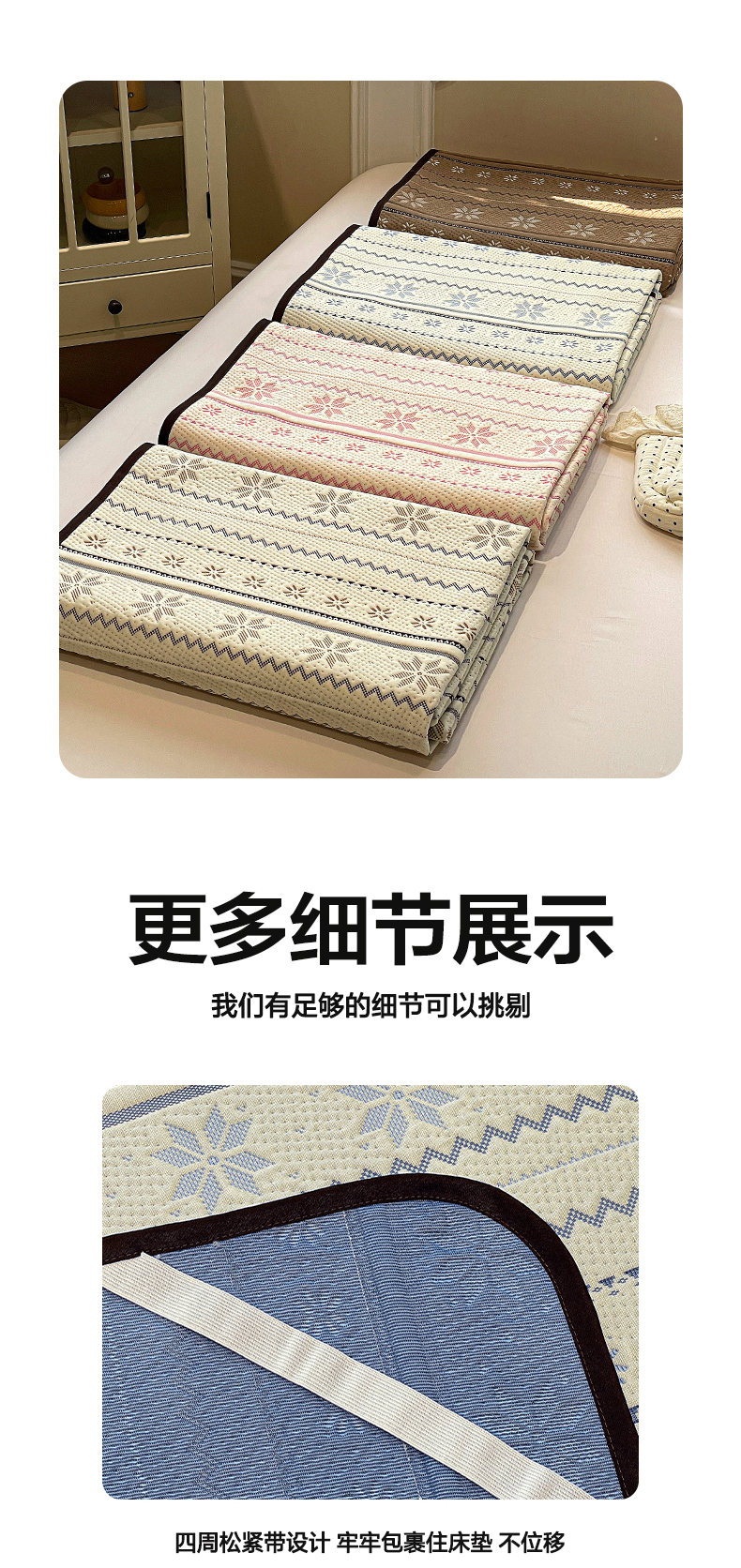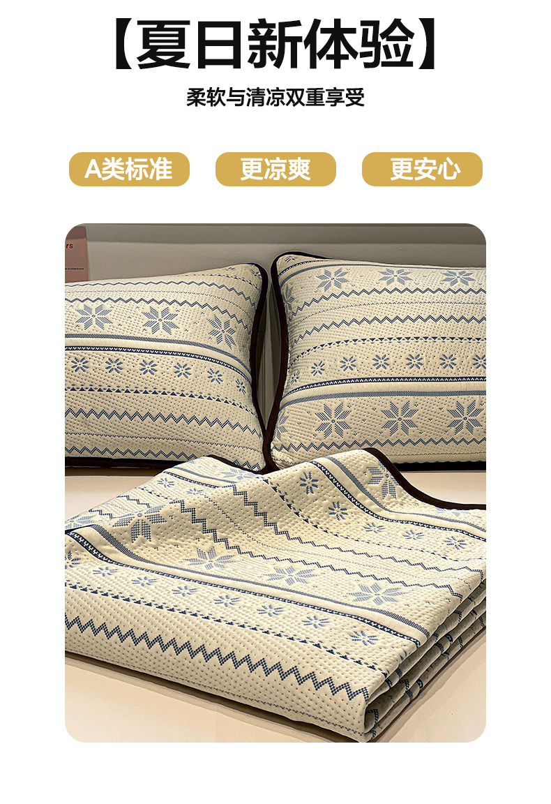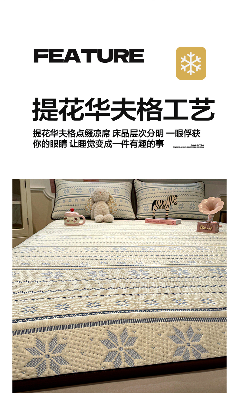 商品名称:(总)山茶家居-原创设计(原山茶家纺) 2026新款A类pe提花华夫格凉感席凉席席子-费尔岛系列