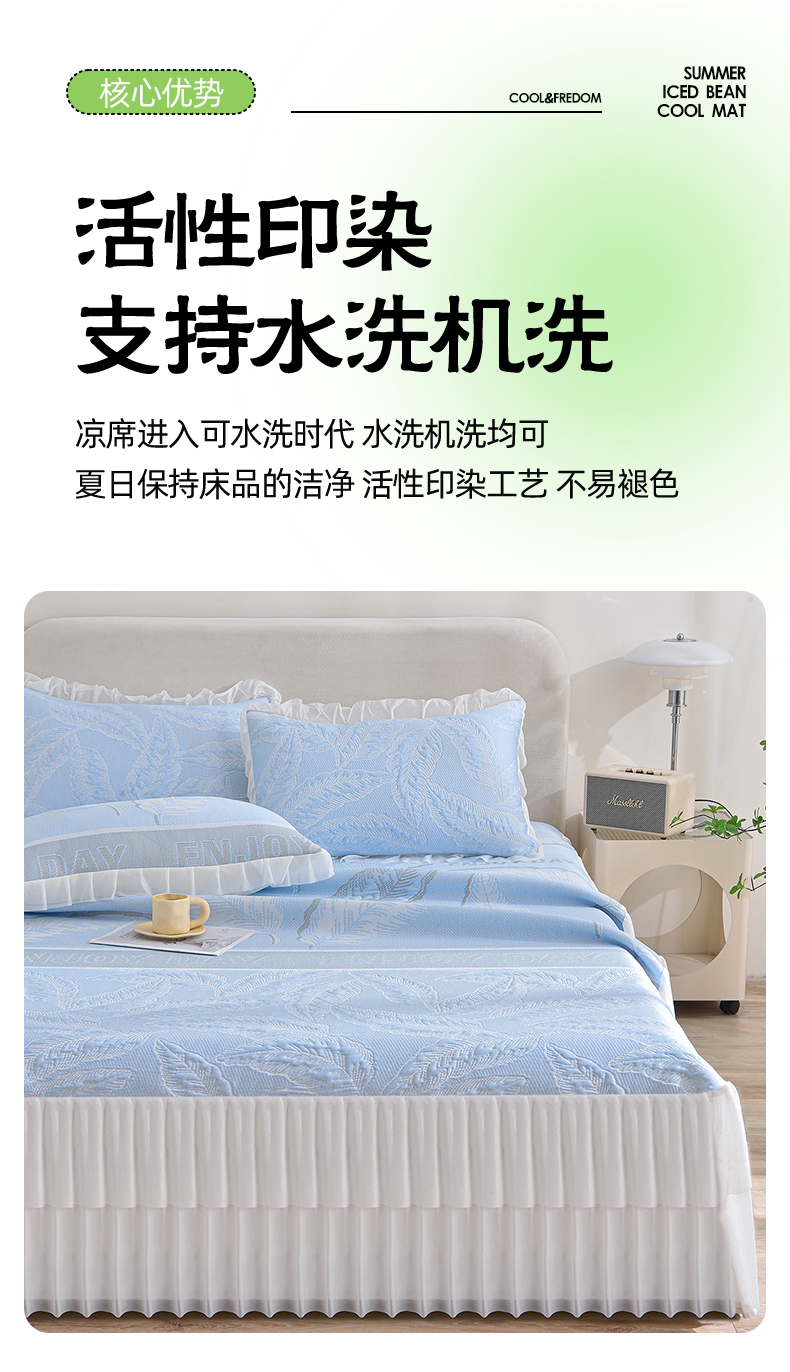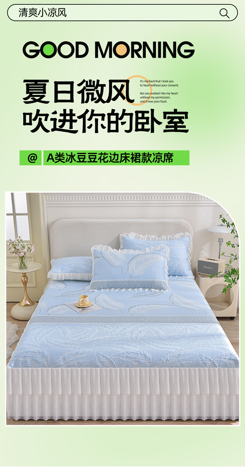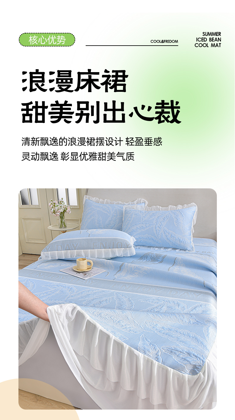 (总)德比尔斯 2026新款A类凉感凉豆豆床裙款凉席-芭蕉叶,芭蕉叶-粉,芭蕉叶-蓝,芭蕉叶-绿,芭蕉叶-香槟
