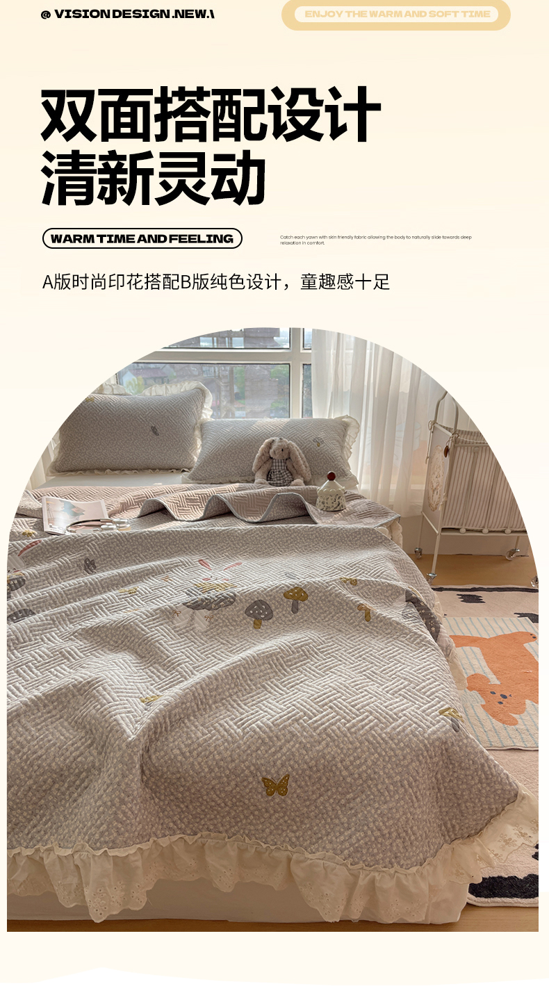 (总)悦织湾家纺 2026新款印花泡芙棉花边床盖三件套春秋夏秋床罩款三件套轻奢时尚
