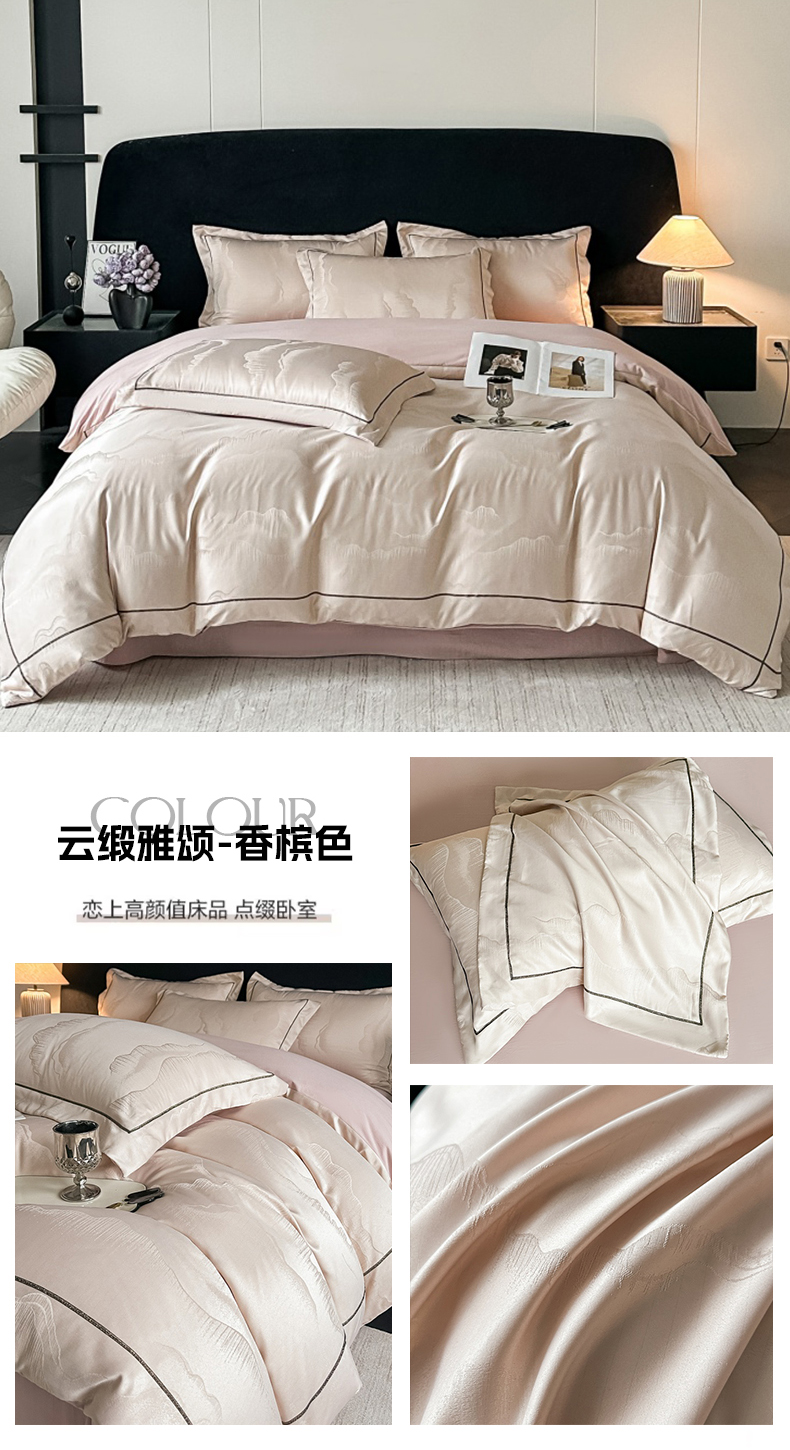 商品名称:(总)韩秀家纺 2026新款A类亮丝提花立体浮雕贡缎臻棉床裙四件套