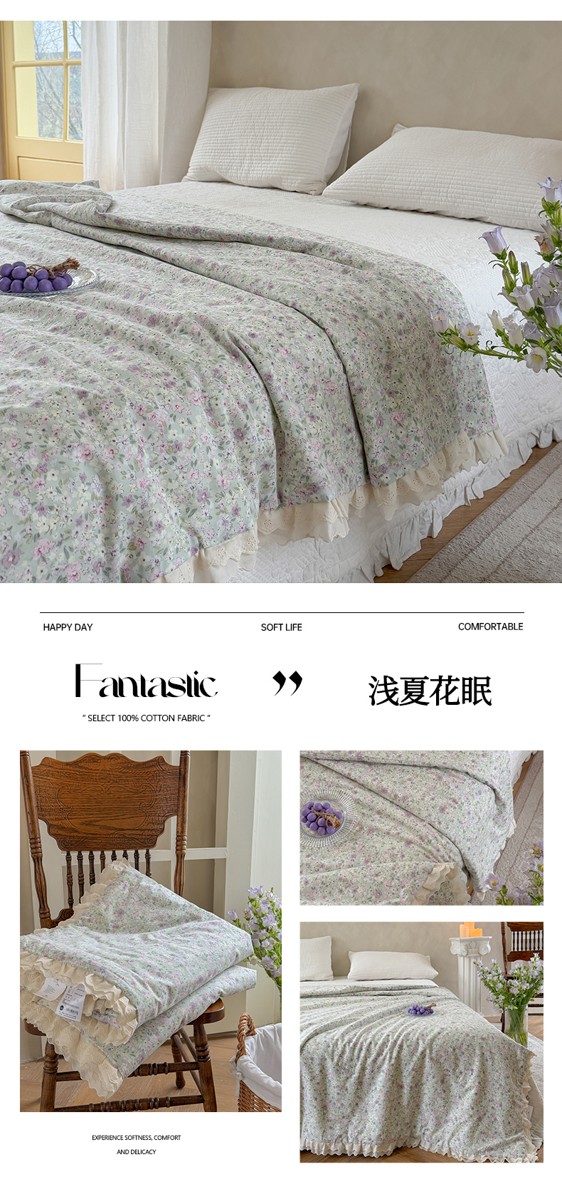(总)暖生活 2026新款全棉花边款大豆夏被夏凉被空调被,浅夏花眠,薄荷碎花,粉樱花屿,莫奈花漾,奶杏花谣,晴日花条,紫兰花语,组合图仅供展示-不可下单