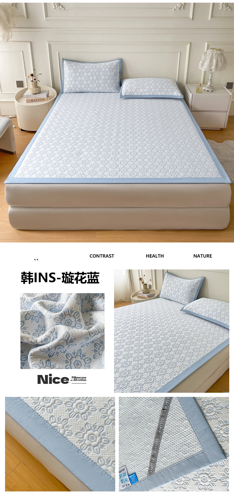 当前位置: 91家纺网 > 商品网购 > 床上用品 > 凉席 > 其他凉席 > 耐思家纺 2026新款高端三明治硅胶复合PE乙纶提花冰豆豆凉席空调席韩版NIS系列(提供买家秀)床席款 韩INS-璇花蓝
