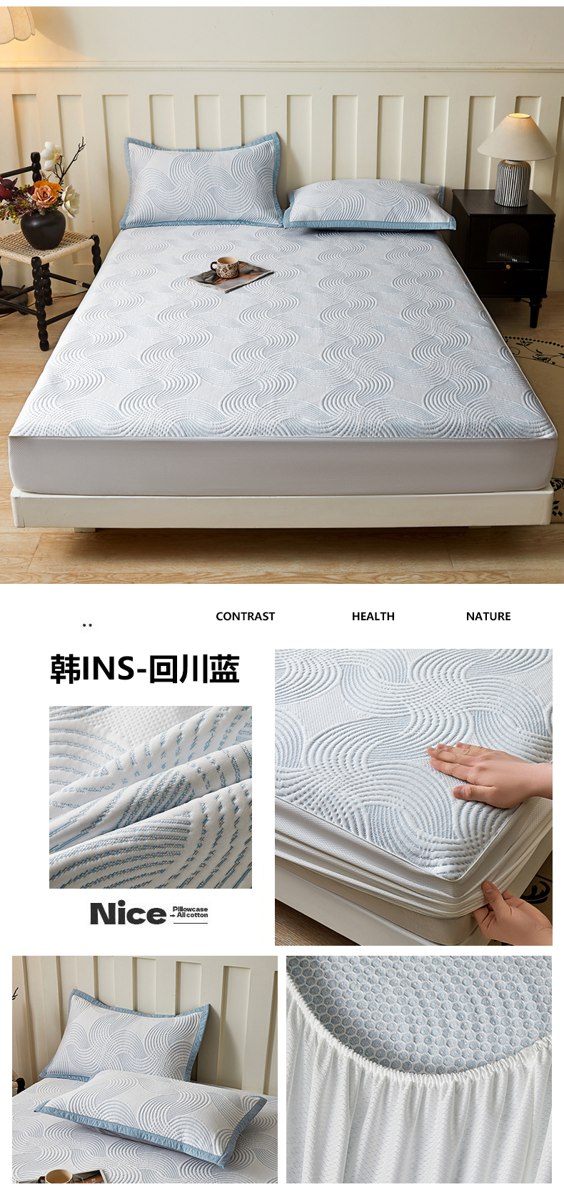 商品名称:耐思家纺 2026新款高端三明治硅胶复合PE乙纶提花冰豆豆凉席空调席韩版NIS系列(提供买家秀)床笠款 韩INS-方圆蓝