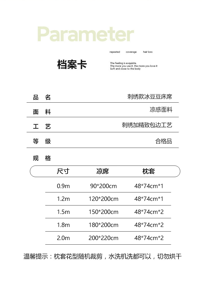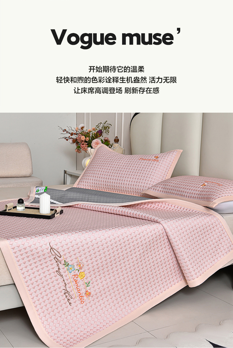 商品名称:(总)畅畅家纺 2026新款PE凉感豆豆凉席绣花三明治复合系列平铺款床席-格韵