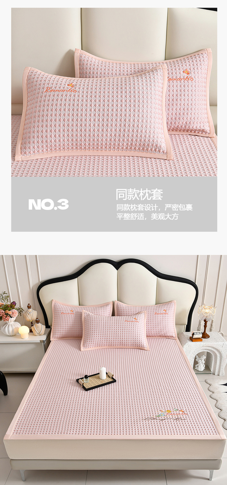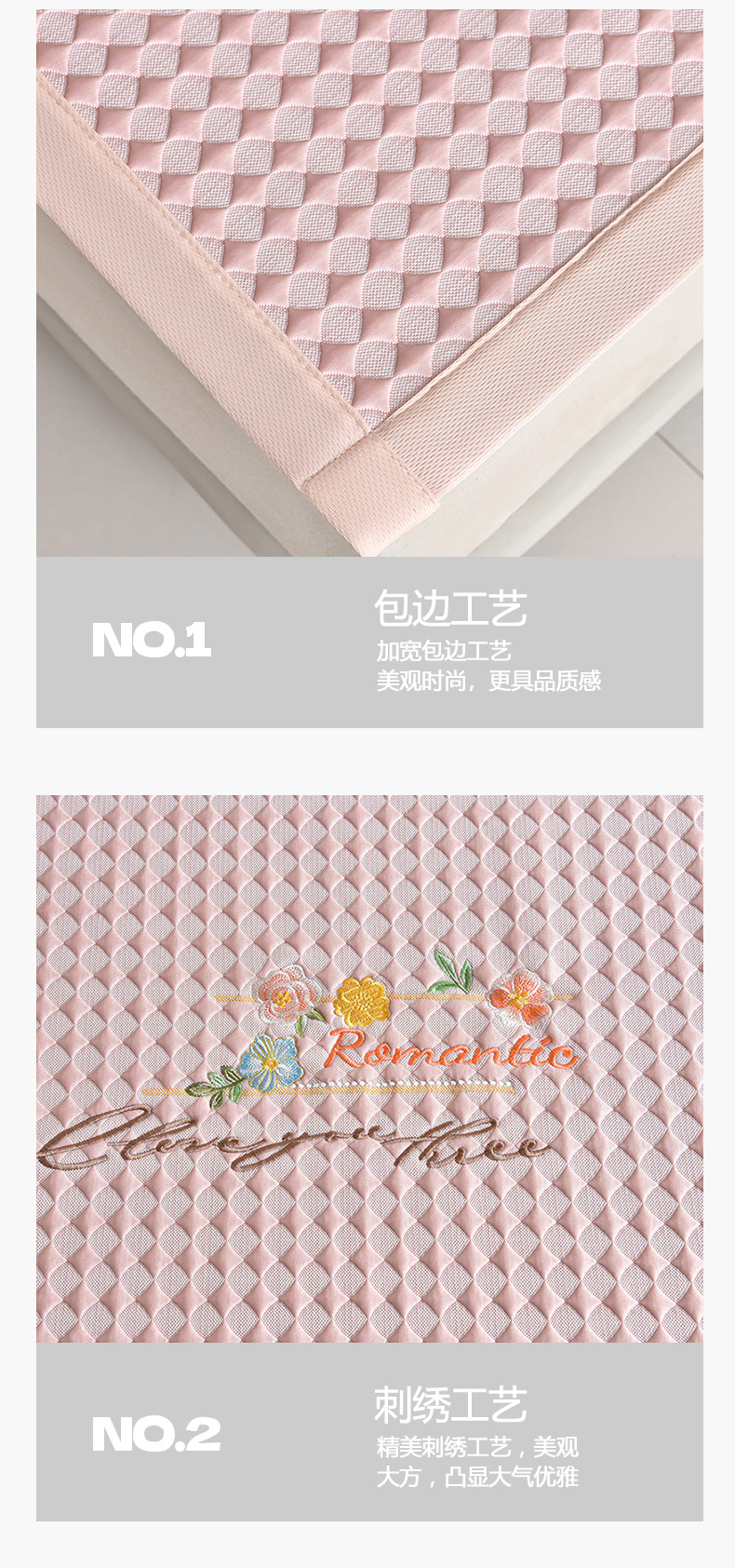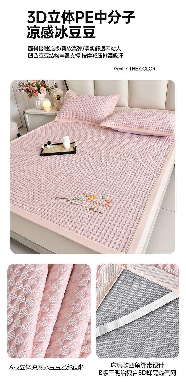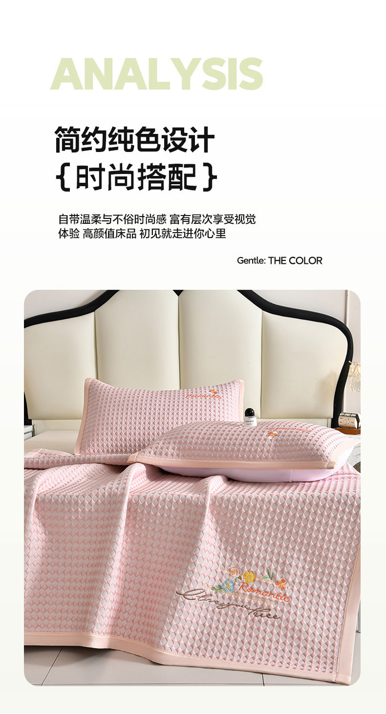 (总)畅畅家纺 2026新款PE凉感豆豆凉席绣花三明治复合系列-床笠款,格韵-粉-床笠款,格韵-灰-床笠款,格韵-蓝-床笠款,格韵-绿-床笠款