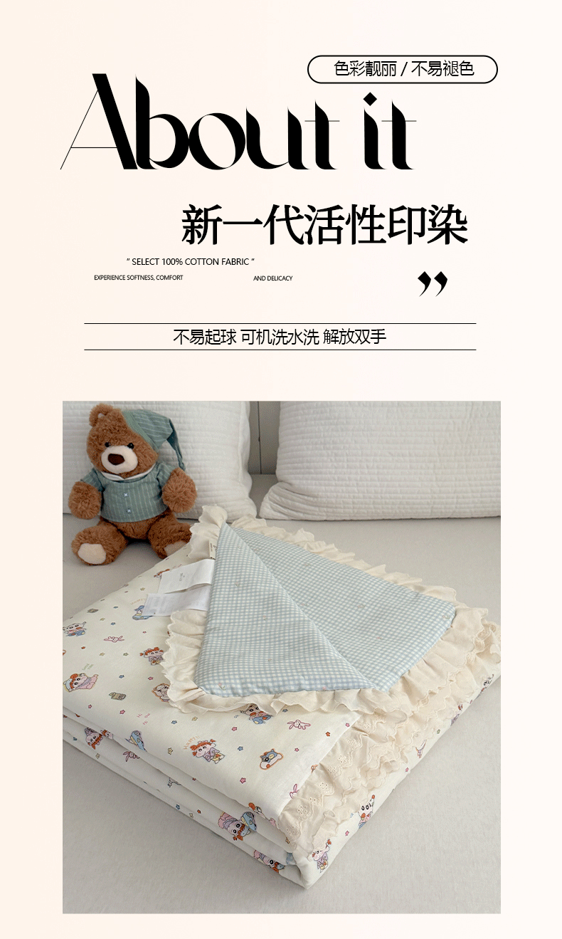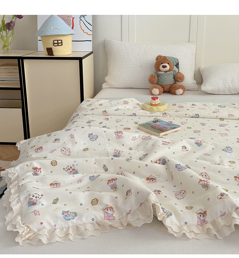 (总)暖生活 2026春夏新款全棉花边款夏被夏凉被空调被-卡通版,组合图仅供展示不可下单,快乐小新,蕾丝兔,南瓜小熊,软蓝小宠,小猫花梦,小小马,星月凯蒂,紫芋小兔,字母小象