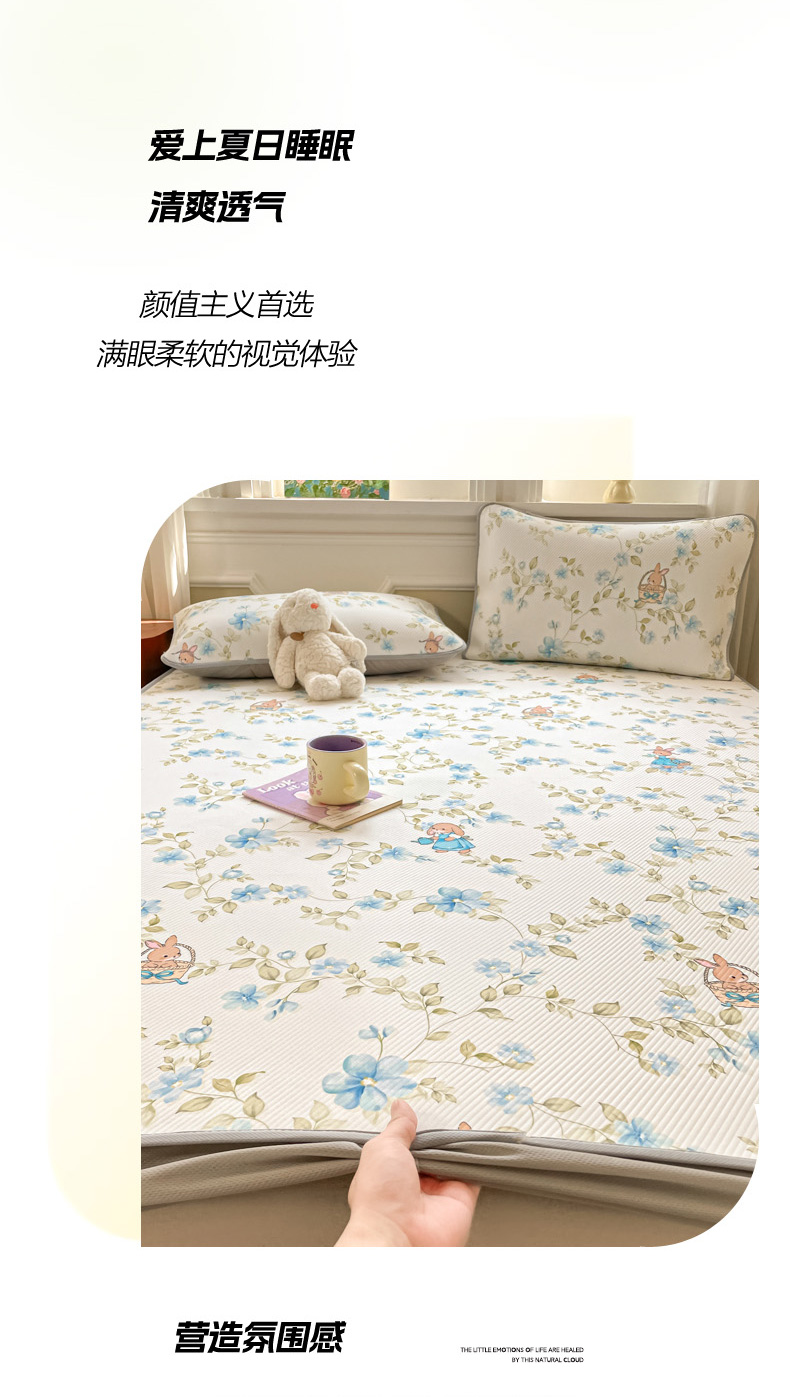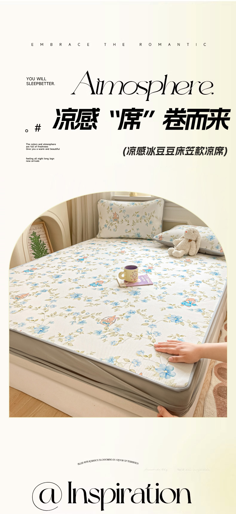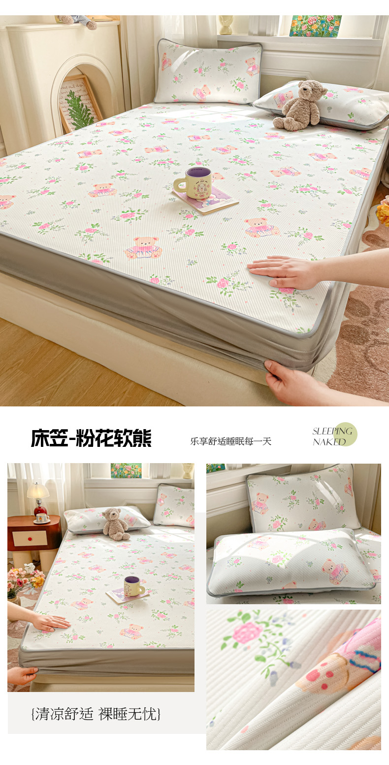 (总)女子家纺 2026新款大斜纹复合冰丝凉席-床笠款,爱心气泡粉-床笠款,萌熊印象-床笠款,奶油草莓-床笠款,拈花湾蓝-床笠款,七彩龙-床笠款,奇妙幻想-床笠款,水木年华-床笠款,午后茶花-床笠款,悠悠小元-床笠款,尤克克里粉-床笠款