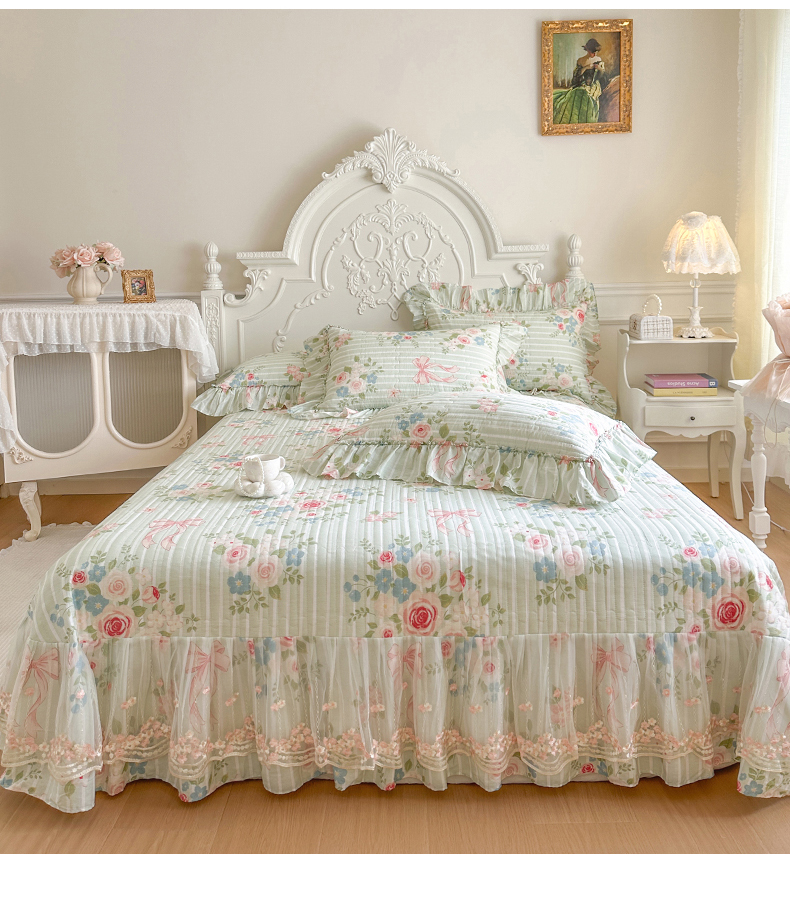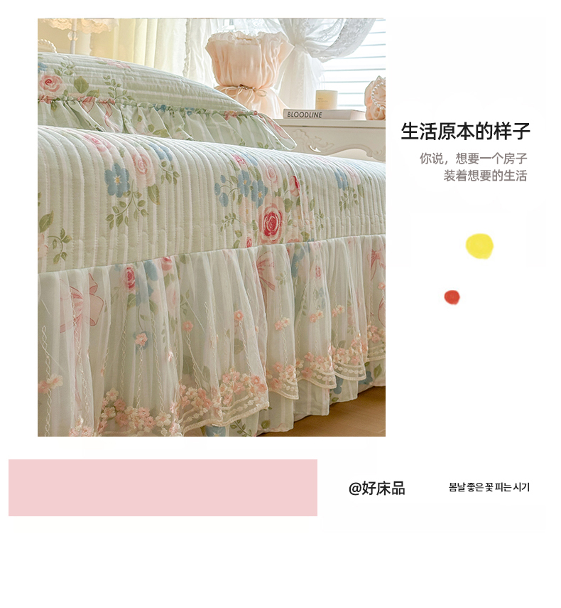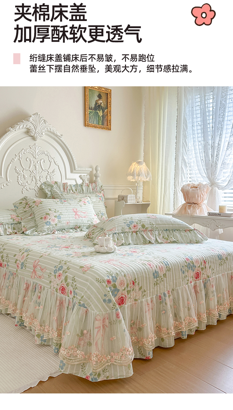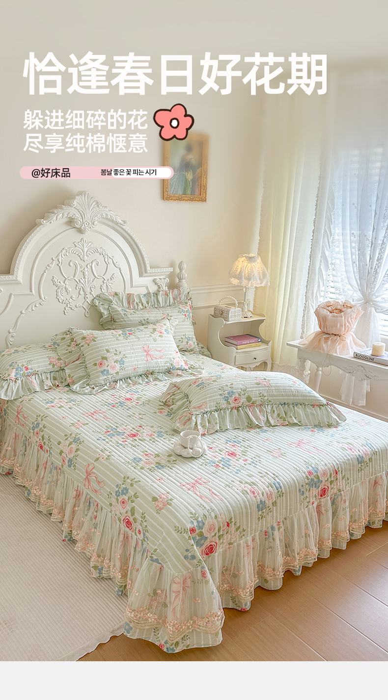 (总)网红馆(ck家纺) 2026春夏新款小清新全棉印花床裙四件套,花蔓蓝,蕾丝花海,翩翩花语,清风花影,甜心花朵,幸福花海