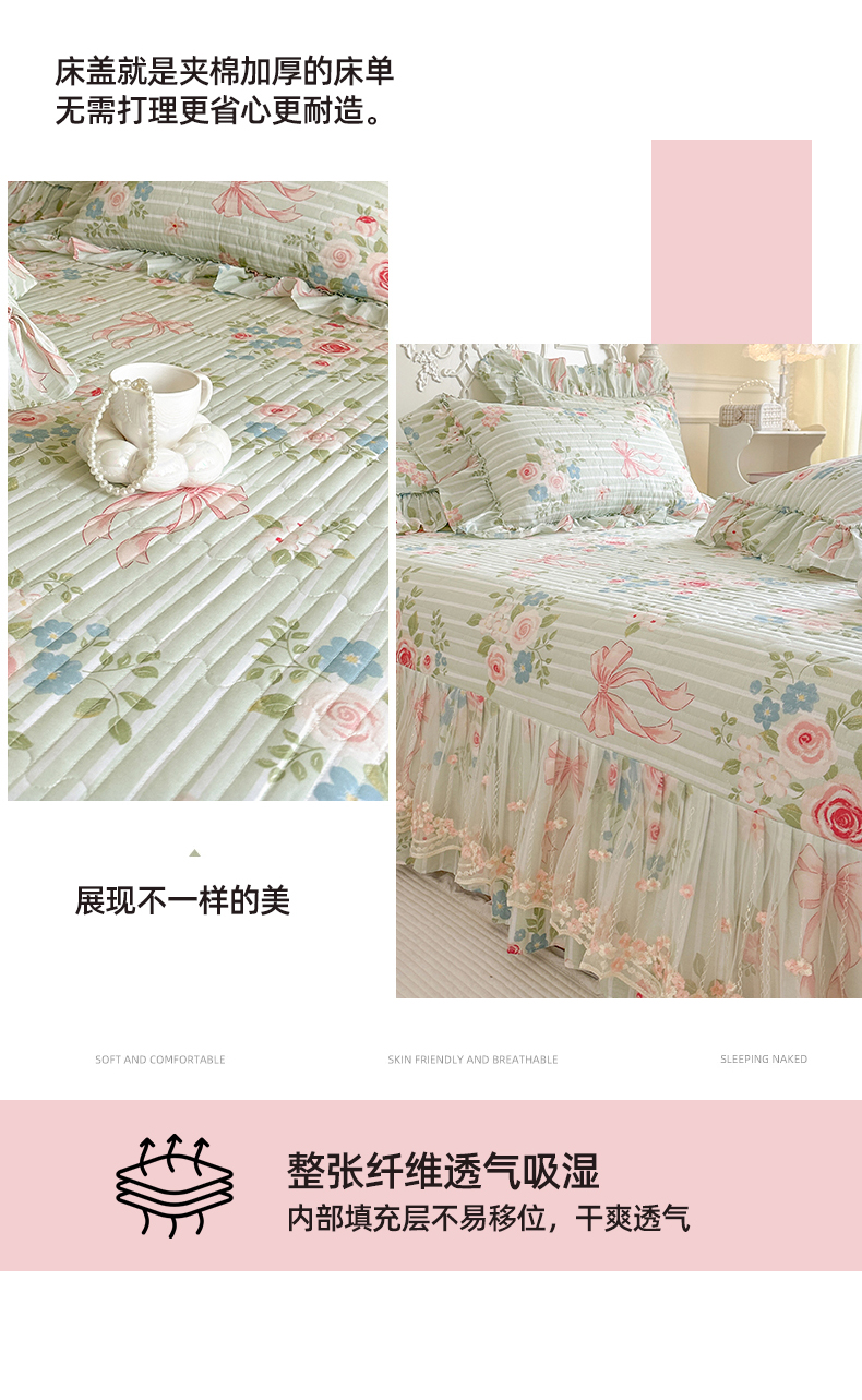 (总)网红馆(ck家纺) 2026新款冰丝夏被床裙款凉席三件套-恋夏花开(控价:三件套170元起 四件套270元起),恋夏花开-粉,恋夏花开-灰,恋夏花开-绿