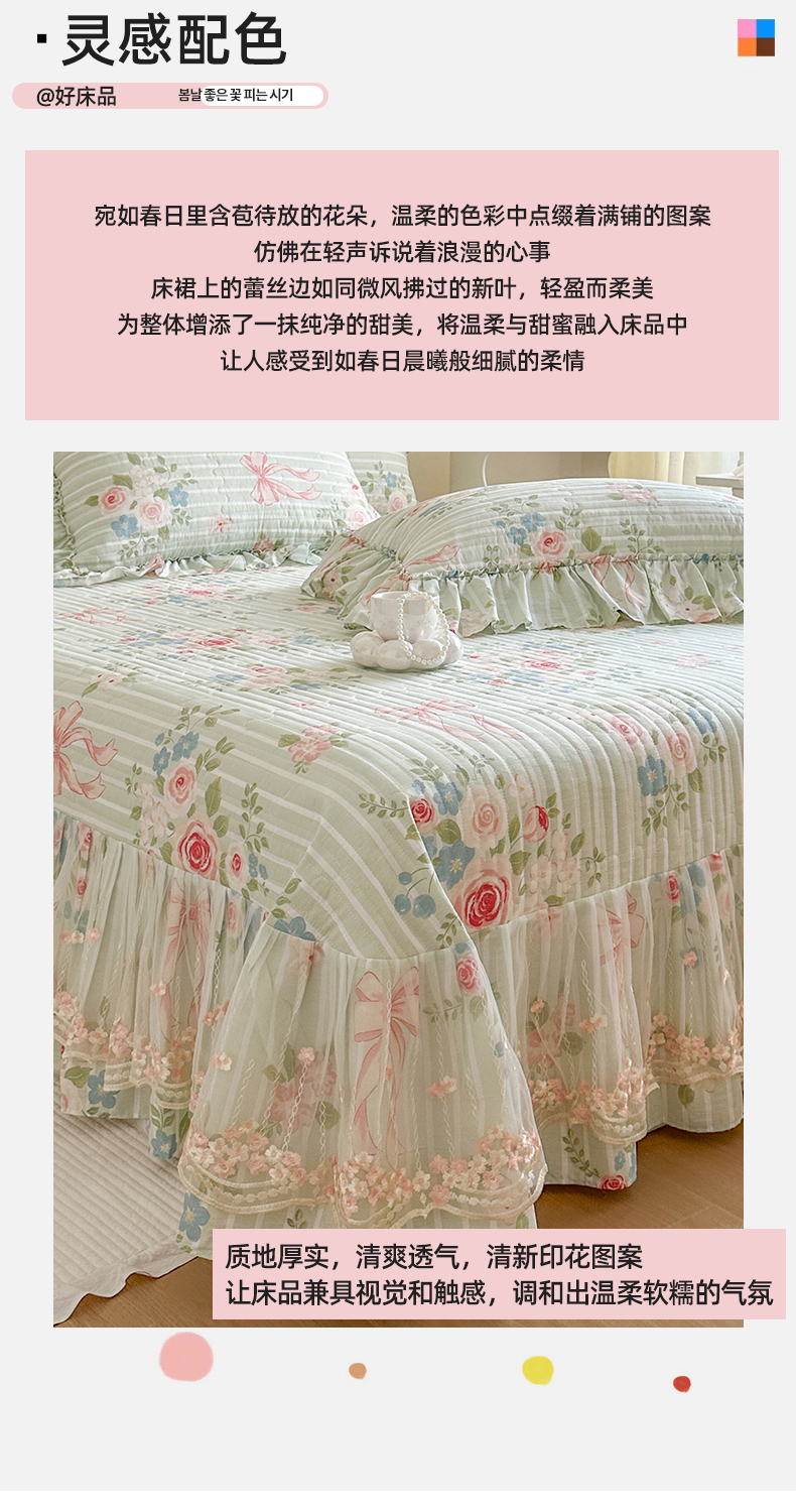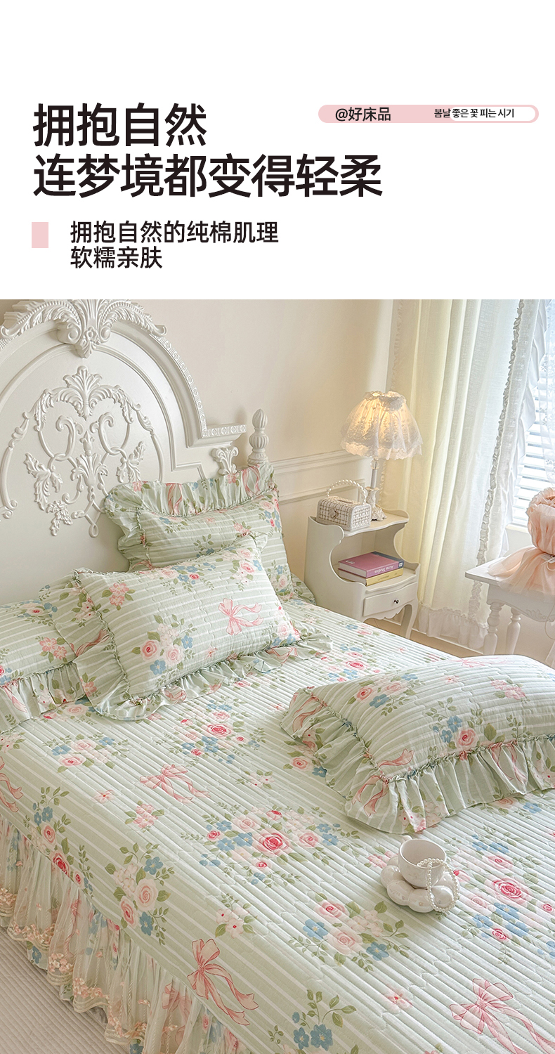 (总)网红馆(ck家纺) 2026春夏新款韩版全棉纯棉印花床盖三件套,花柯,花熙,茉屿,慕夏,轻婉花语,悠悠仙境