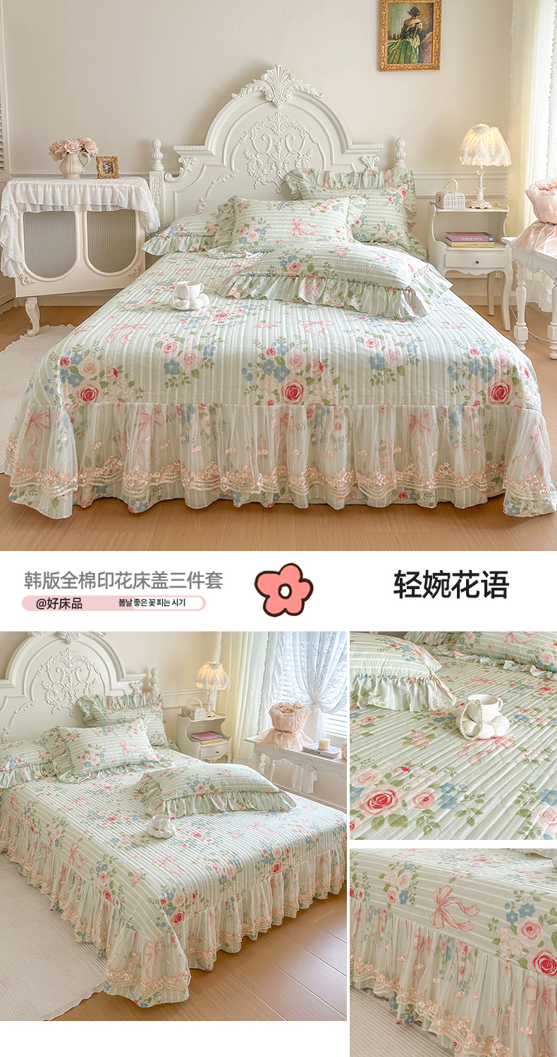 商品名称:网红馆(ck家纺) 2026春夏新款韩版全棉纯棉印花床盖三件套 轻婉花语