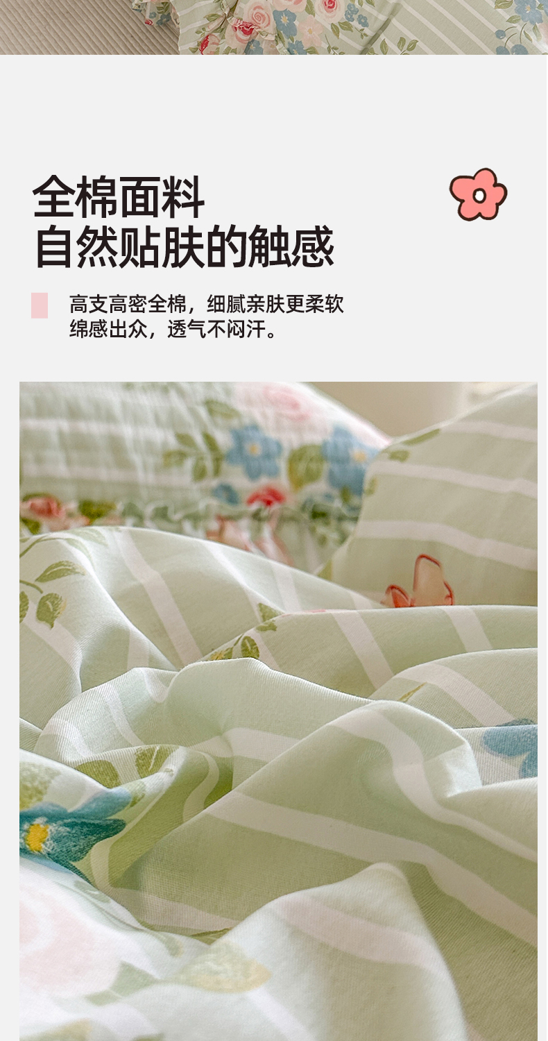 (总)网红馆(ck家纺) 2026春夏新款小清新田园全棉印花床盖四件套,花蔓蓝,蕾丝花海,翩翩花语,清风花影,甜心花朵,幸福花海