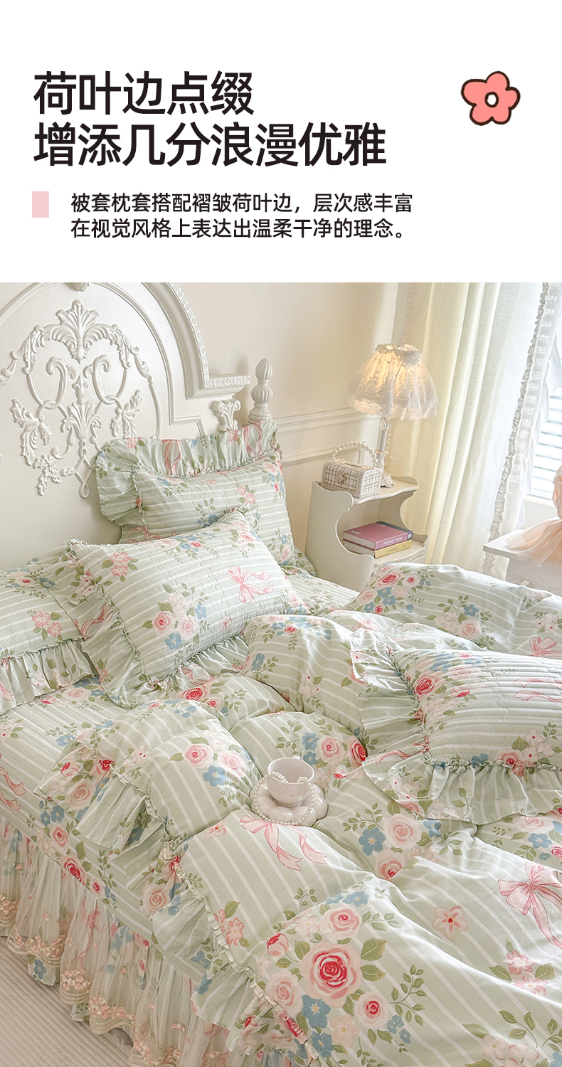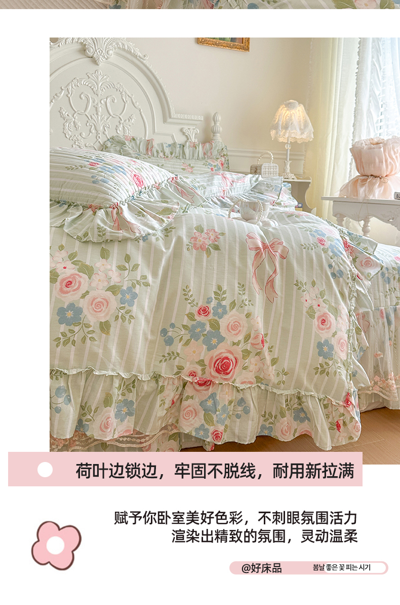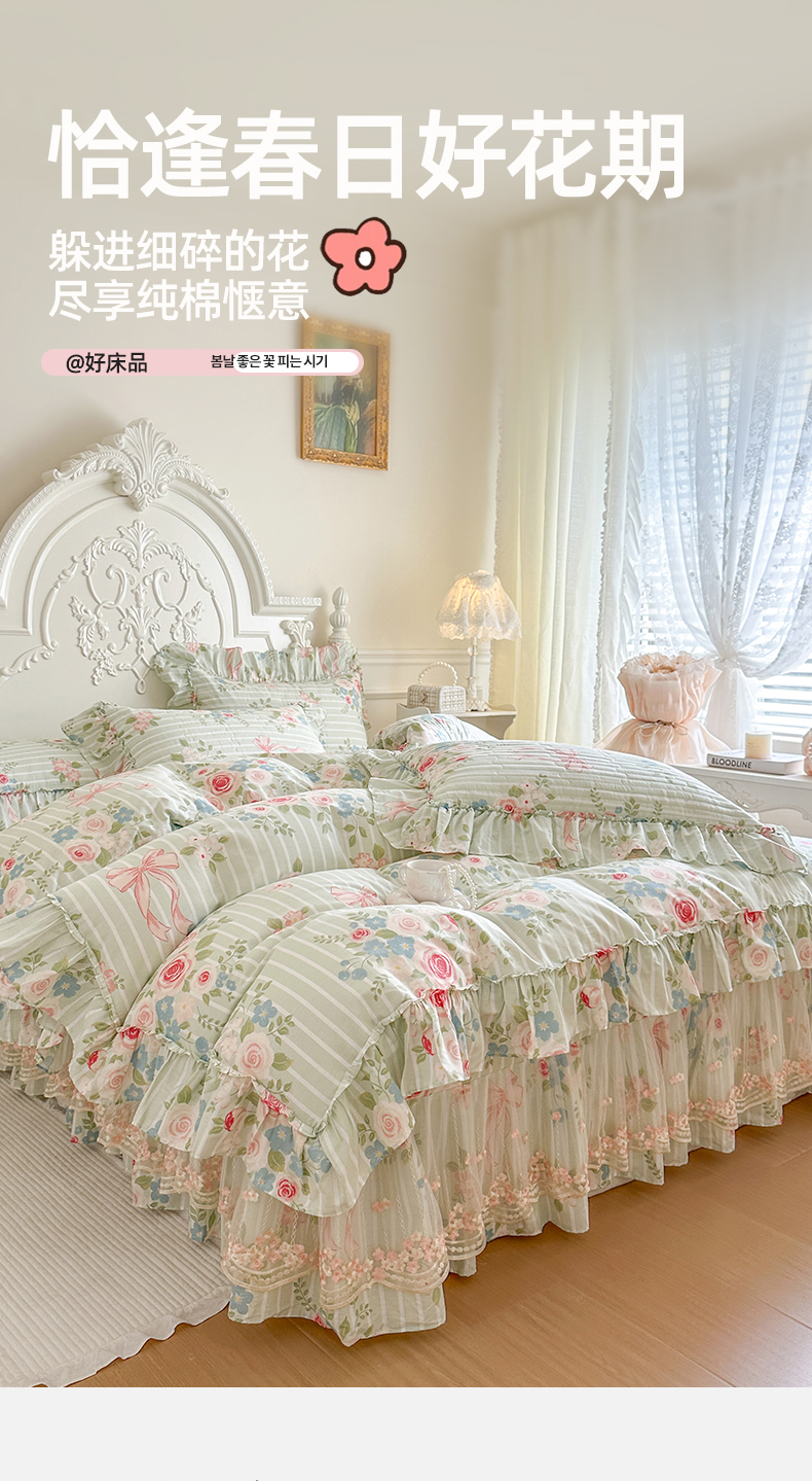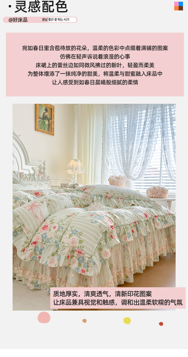 (总)网红馆(ck家纺) 2026春夏新款小清新全棉印花床裙四件套,花蔓蓝,蕾丝花海,翩翩花语,清风花影,甜心花朵,幸福花海