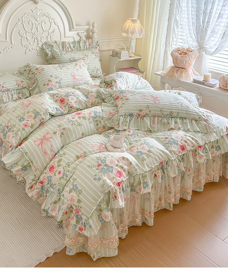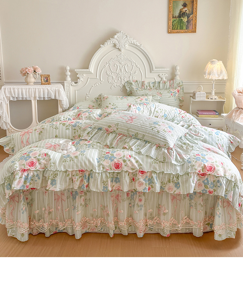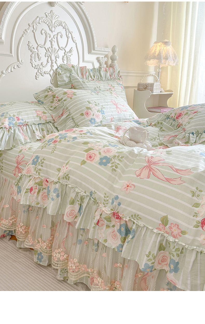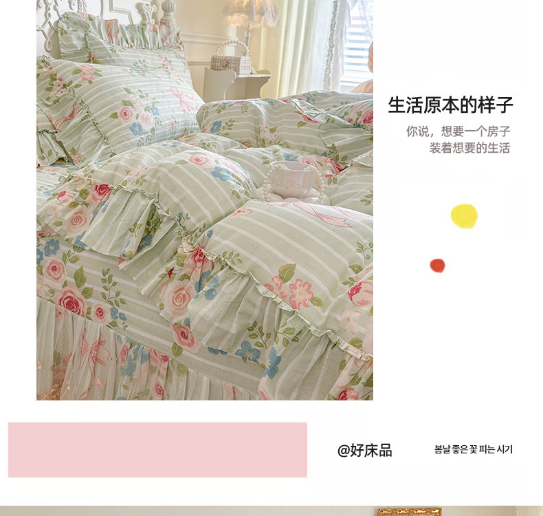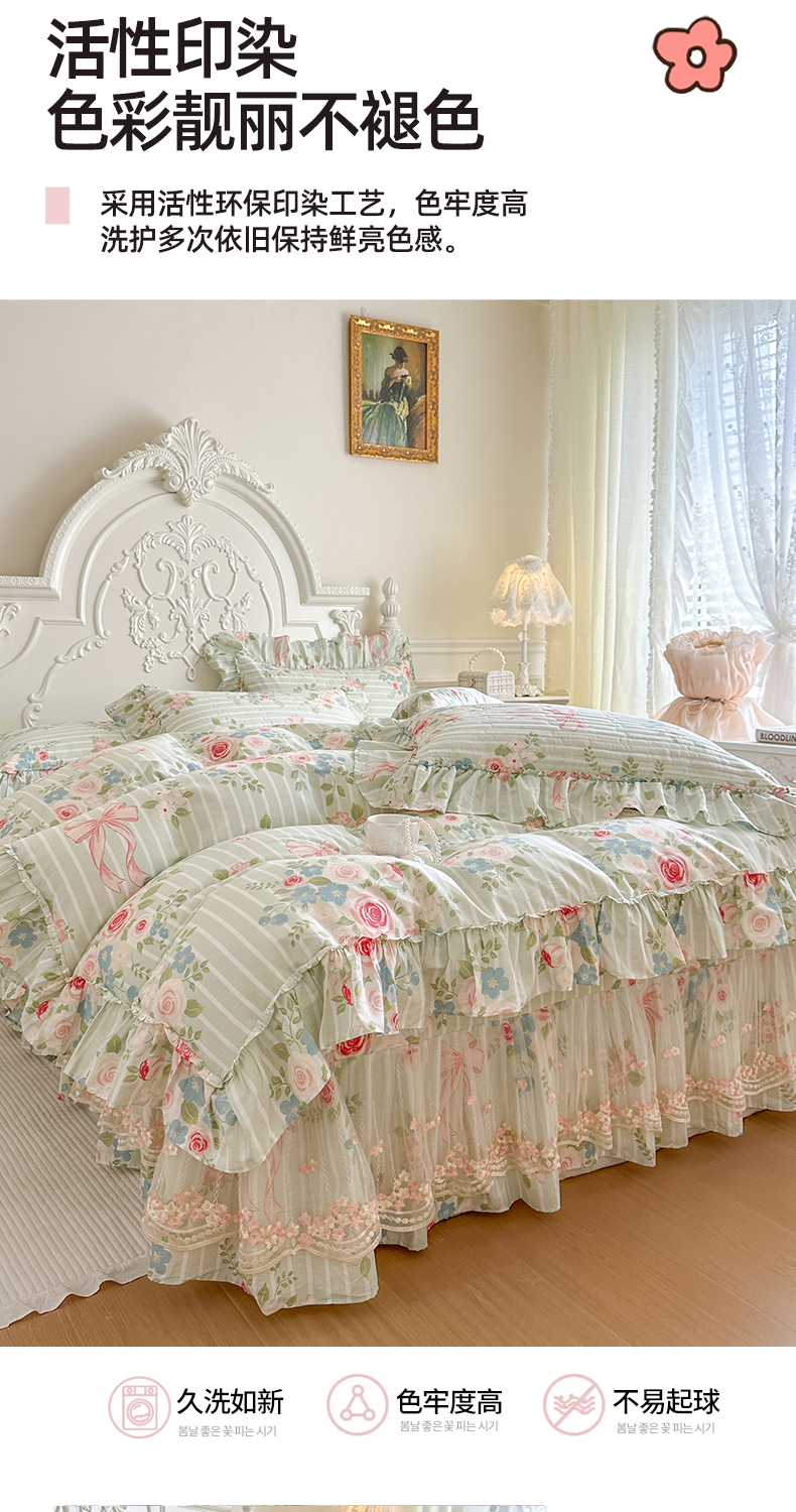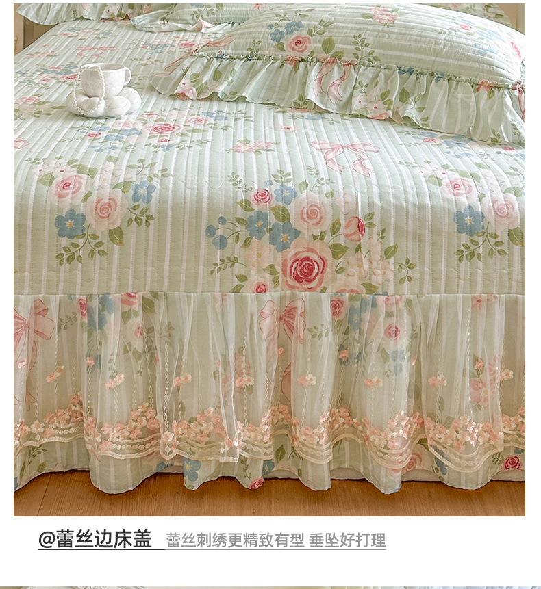 (总)网红馆(ck家纺) 2026春夏新款小清新全棉印花床裙四件套,花蔓蓝,蕾丝花海,翩翩花语,清风花影,甜心花朵,幸福花海