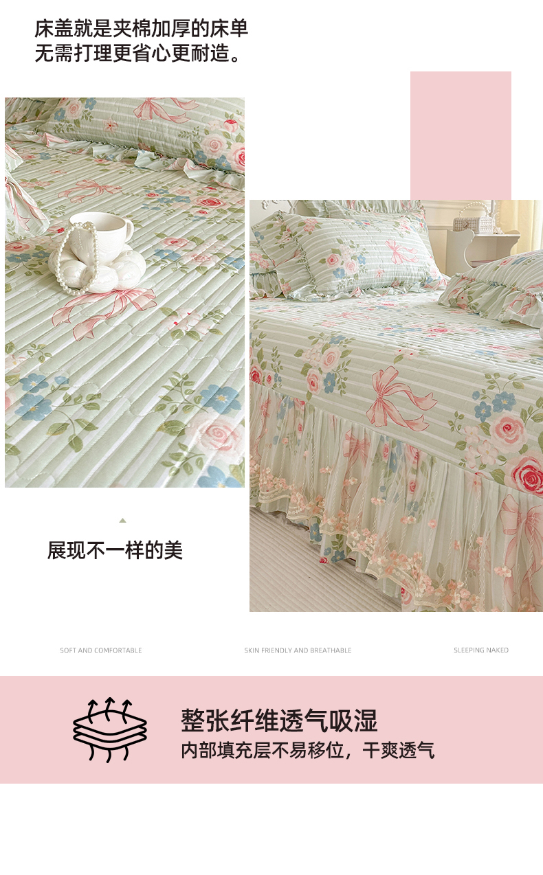 (总)网红馆(ck家纺) 2026新款冰丝夏被床裙款凉席三件套-恋夏花开(控价:三件套170元起 四件套270元起),恋夏花开-粉,恋夏花开-灰,恋夏花开-绿