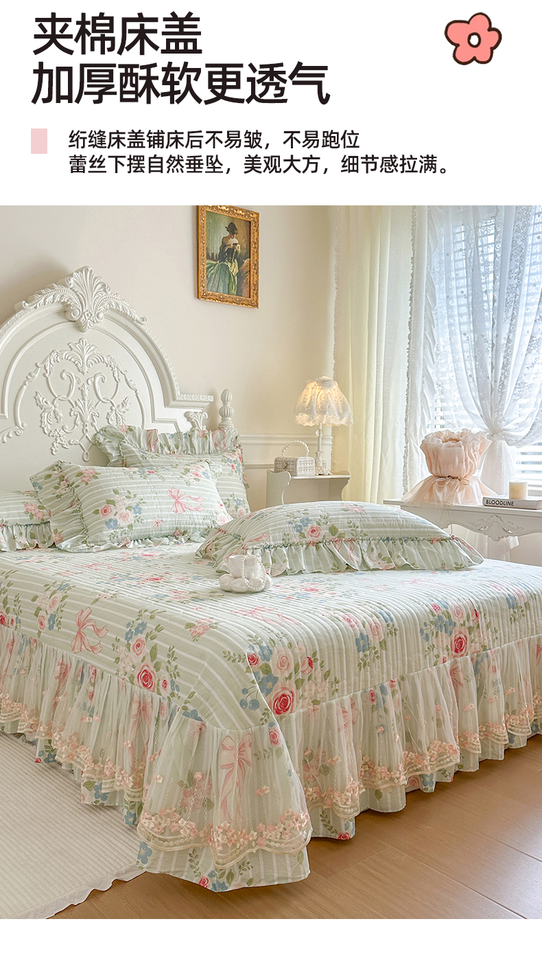 (总)网红馆(ck家纺) 2026春夏新款小清新田园全棉印花床盖三件套,花蔓蓝,蕾丝花海,翩翩花语,清风花影,甜心花朵,幸福花海